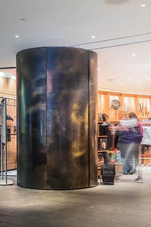 Column covers made custom with Zahner can be made in and endlessly custom variety, from aluminum to zinc. These decorative column systems can be made in a variety of shapes, including oval, circular, geometric, and square column cladding. Zahner engineers and fabricators will work with your design, providing any size or dimension, as well as providing standard details upon request. These can be finished with custom patination and finishes.