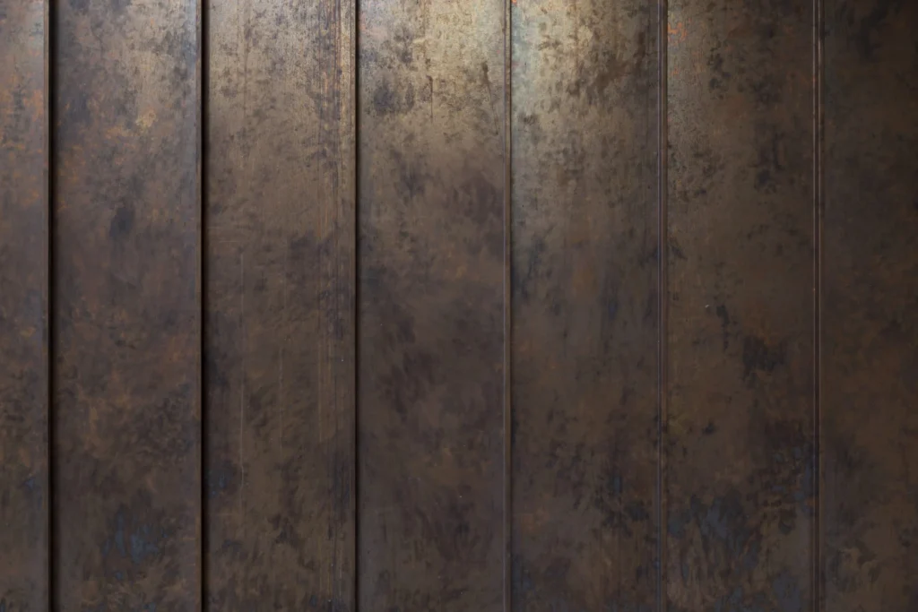 Well suited for exterior and interior surfaces, Dirty Penny is applied to copper or alloys of copper with high copper content. Creating this patina is similar to creating a red patina and is most often used for copper alloy tabletops, ceilings, and wall panels.