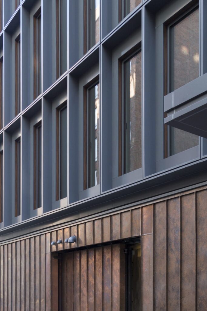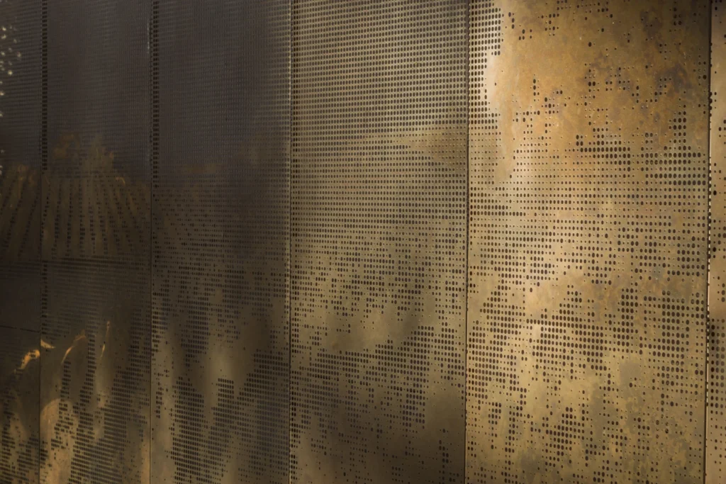 Keen on the words of philosopher Lucius Seneca, “All art is but an imitation of nature,” the architects sought an aged and natural appearance for the perforated copper wall. As a finish, Dirty Penny became the obvious choice.