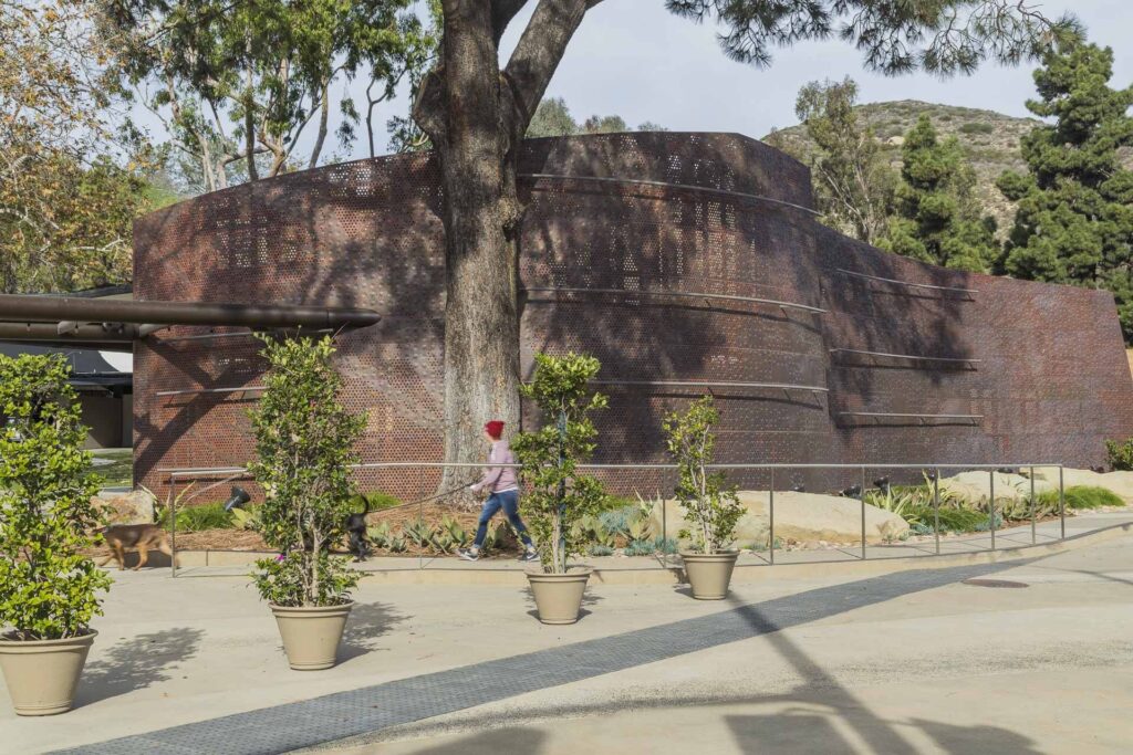 The recently renovated Festival of Arts in Laguna Beach is also clad in the Dirty Penny finish. Unlike a coating of paint or anodization, which will begin to deteriorate, this custom patina will strengthen as the surface oxidizes.