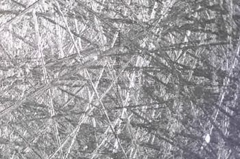 Microscope photographs comparing GB-60 stainless steel with Angel Hair® Stainless steel.