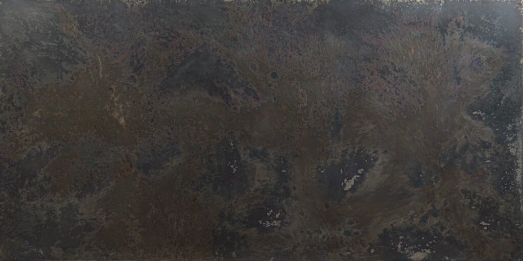 Oscura lends a rich, mottled patina to carbon steel sheets, bringing variation and artistic depth to every piece. Sealed with a clear protective coating, it resists scratching and rust, making it ideal for interiors where tactility and nuance are valued.