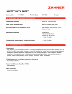 Safety data for Angel Hair Stainless Steel includes: