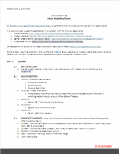 The Moda 3-part specification document includes the following: