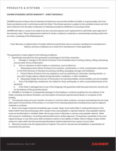 ZAHNER warrants to Buyer that all materials furnished are new and that all Work by Seller is of good quality, free from faults and defects and in conformance with the Order. This limited warranty is subject to the conditions herein set forth and is effective from the date of shipment of materials provided as fulfillment of a purchase Order.