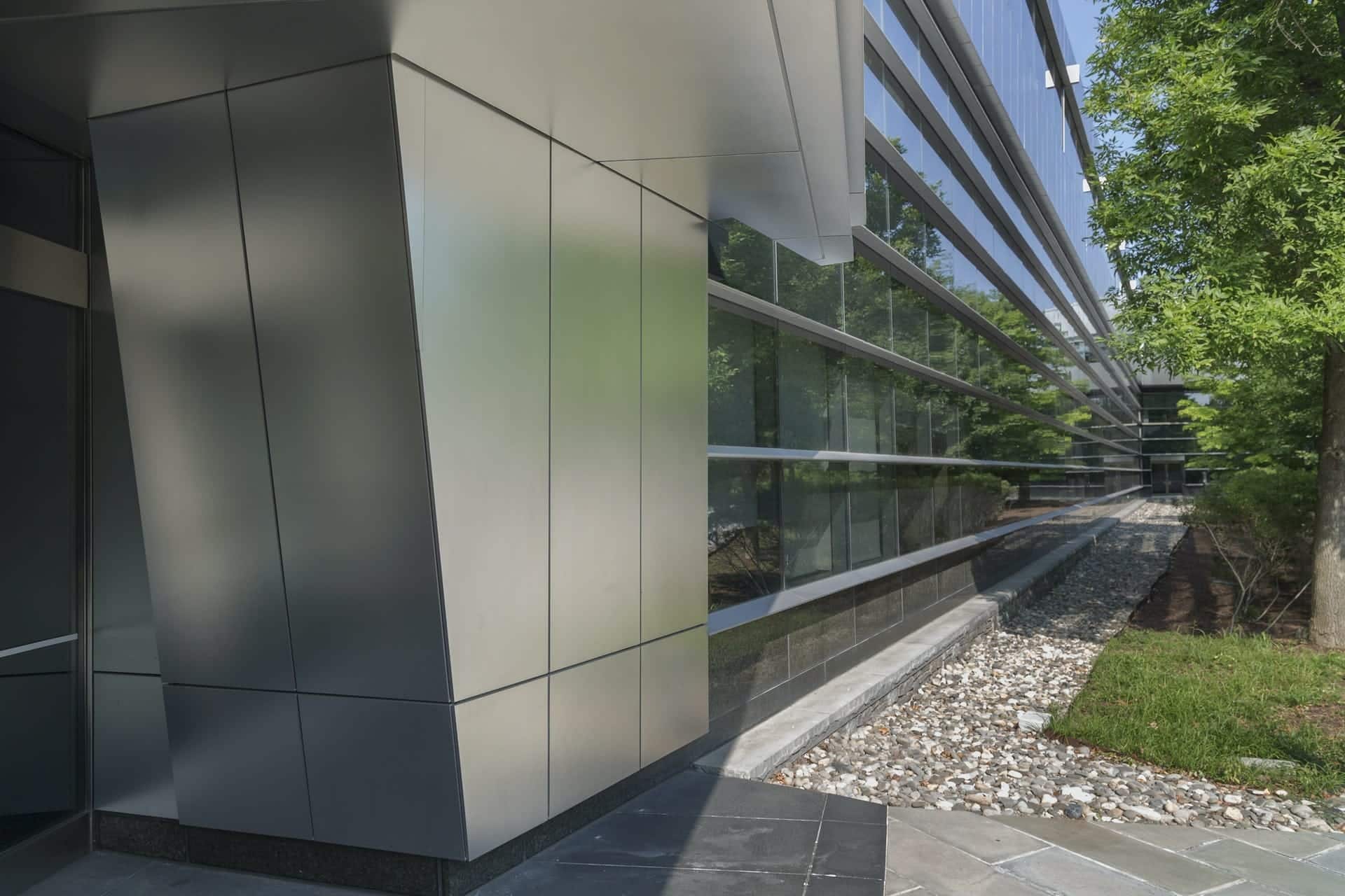 Developed in collaboration with Kohn Pedersen Fox (KPF) architects, GB-60 was designed to meet the need for a contemporary, matte-glow finish on stainless steel. This versatile surface transitions from bright and deep in sunlight to pewter-like under overcast skies. Zahner’s expertise also allows for custom selective polishing on GB-60, adding texture and alternating reflectivity for unique patterns that enhance architectural designs.