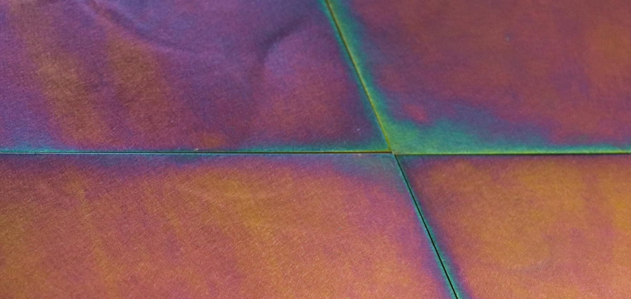A lesser known but aesthetically rich material for patination is zinc. Zinc can also be chemically patinated to develop protective patina coatings in a wide range of color. This is patinated zinc, and it can be developed to create a range of aesthetics.