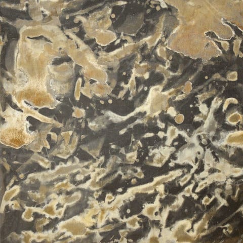 “Patina” is a word describing the oxidization layer which builds up on metal surfaces. Materials like copper and statuary bronze are well known for developing dark browns and greens on their surfaces.