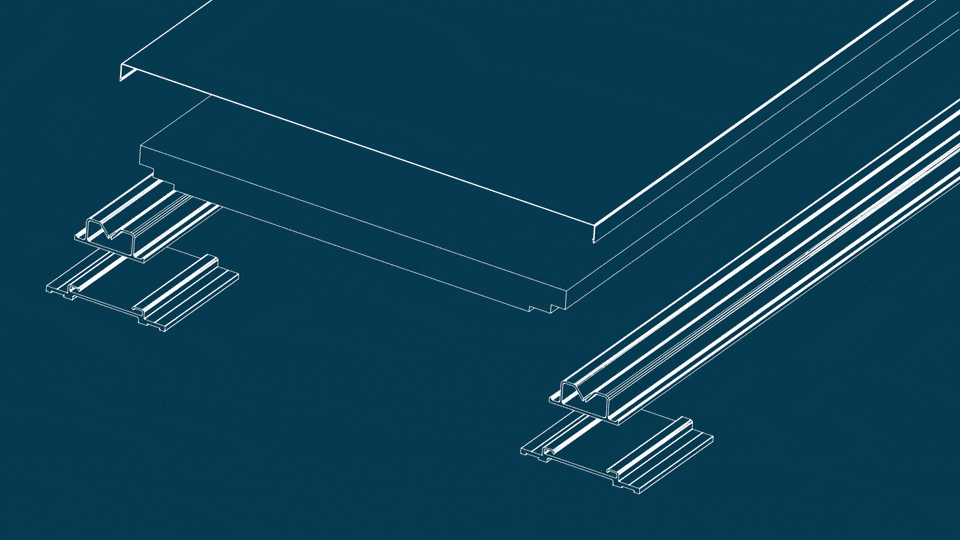 Inverted Seam was developed by Zahner as a solution to create the smoothest, most uniform cladding system with powerful moisture control. As a roof system, Inverted Seam is free of upstanding ribs and seams that define typical metal roof surfaces. It is also free of face-fasteners. All of the attachment hardware is based on internal interlocking hardware.