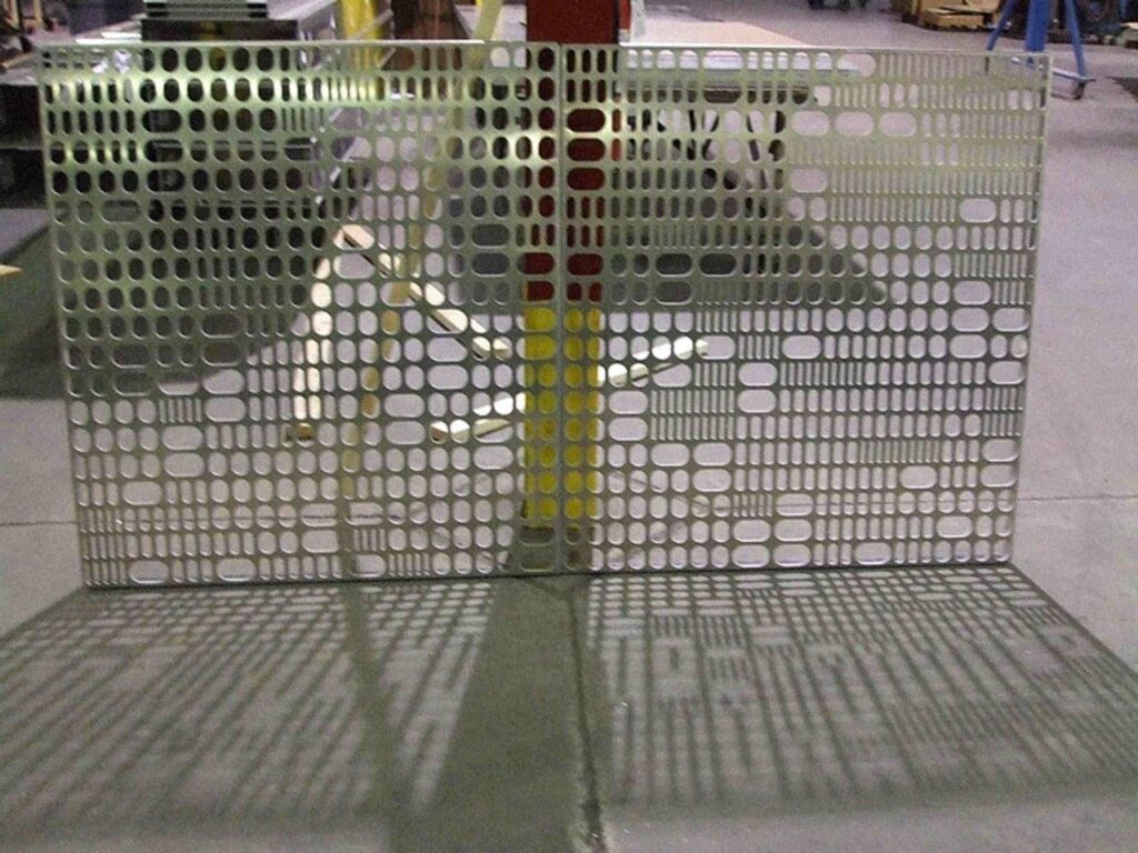 This project was an experimental use of the ZIRA™ Process, as the individual punched shapes were integral to the project. Instead of the typical round and square punches, the designer selected four elliptical punch patterns which were custom-manufactured to complete the surface of the screen-wall. The ZIRA™ Technology allows architects, designers, and engineers to transfer an image onto the surface of metal using physical processes such as perforation, bumped and dimpled surface patterns, as well as waterjet cut patterns and other physical alterations.