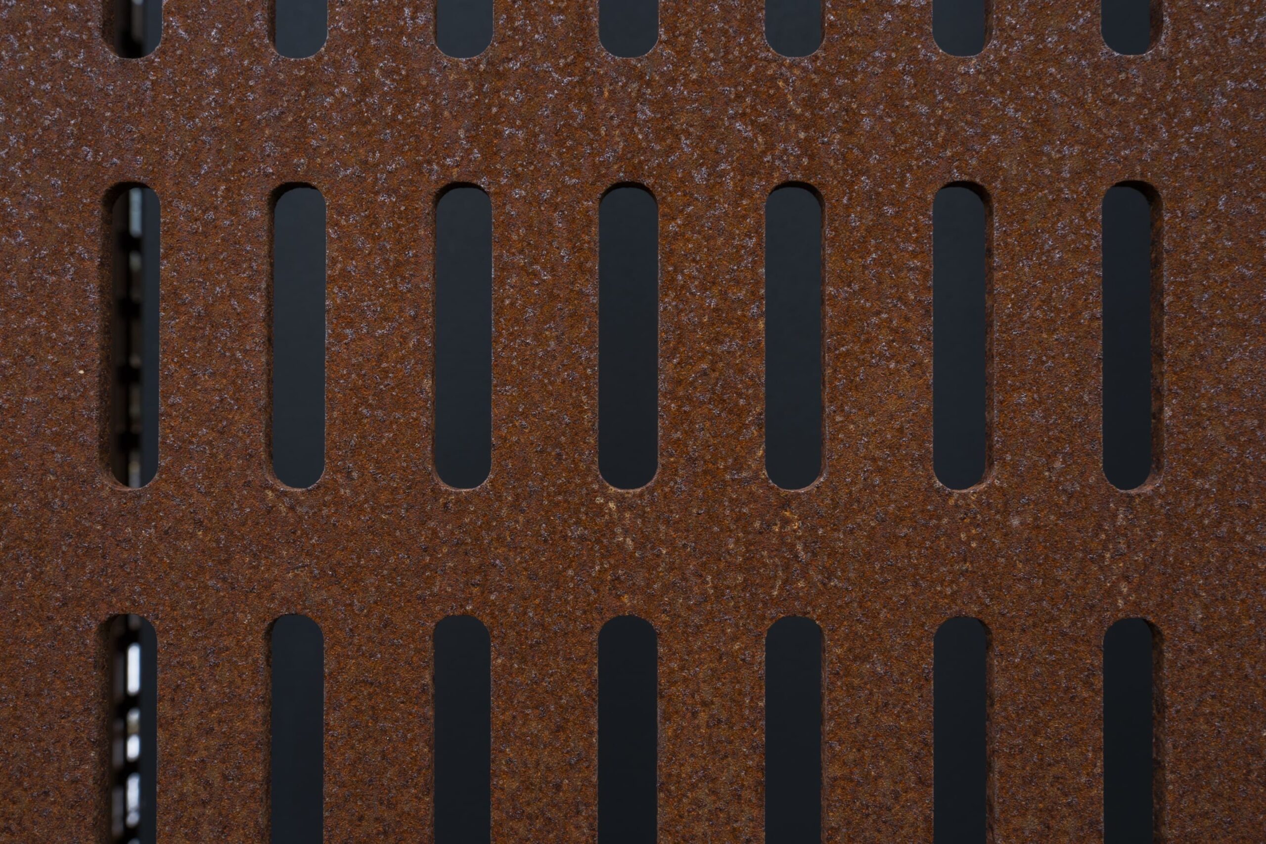 Solanum is a hand-applied patina on weathering steel that is oxidized to the furthest achievable stage, making it more stable than the leading Cor-Ten trademarked by US Steel.