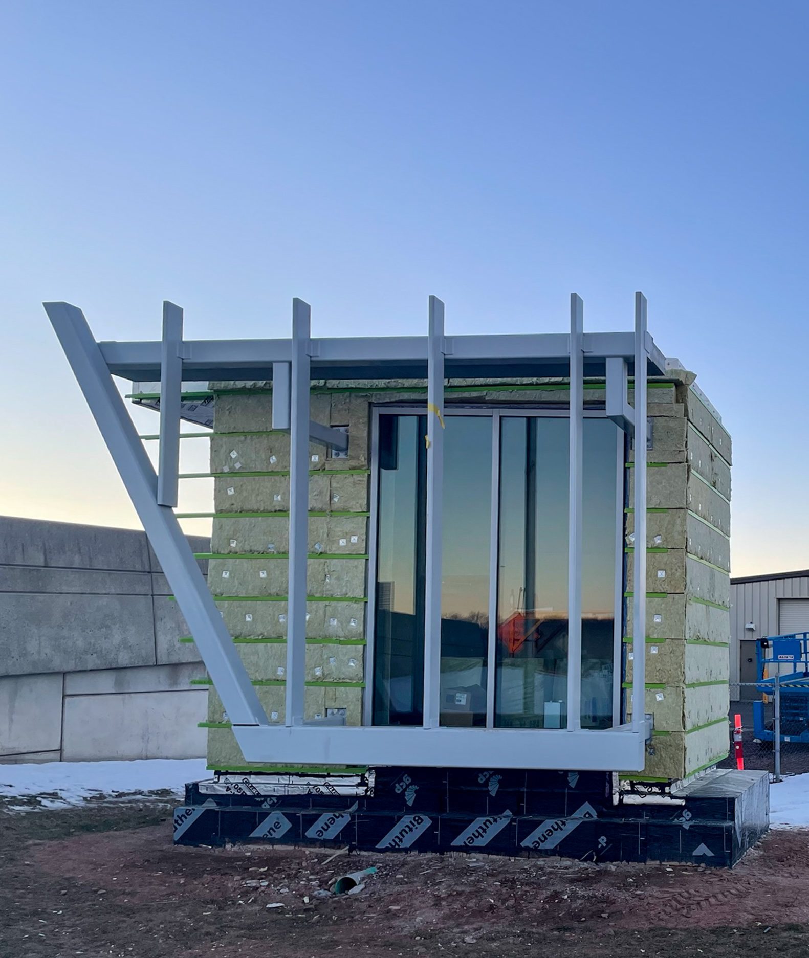 Zahner also fabricated solid aluminum wrap panels used to clad the supporting steel elements behind the screen. These panels add depth to the installation and conceal structural framing while maintaining the continuity of the facade system. A full-scale mockup was produced during the fabrication process to verify the pattern, finish, and lighting integration.