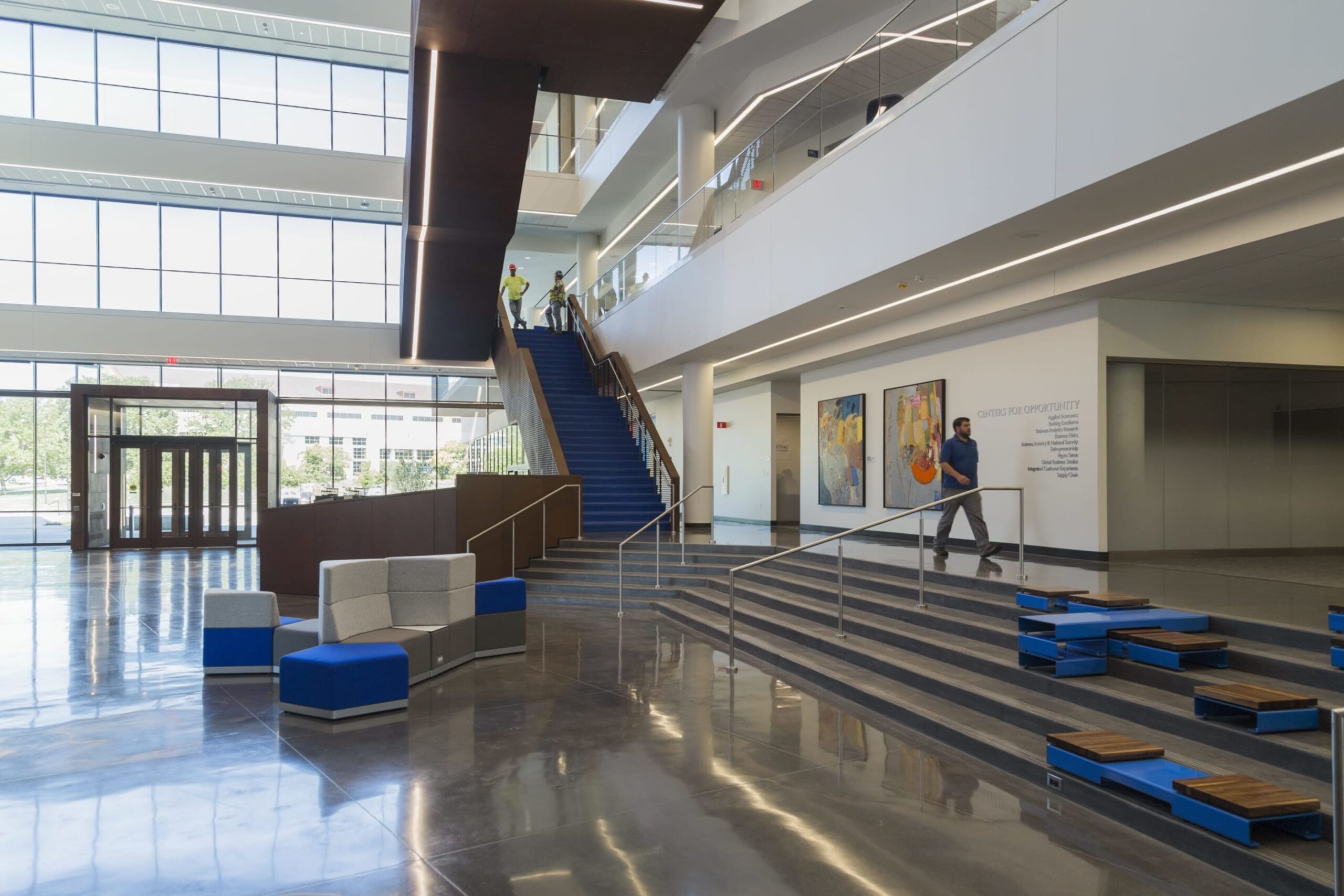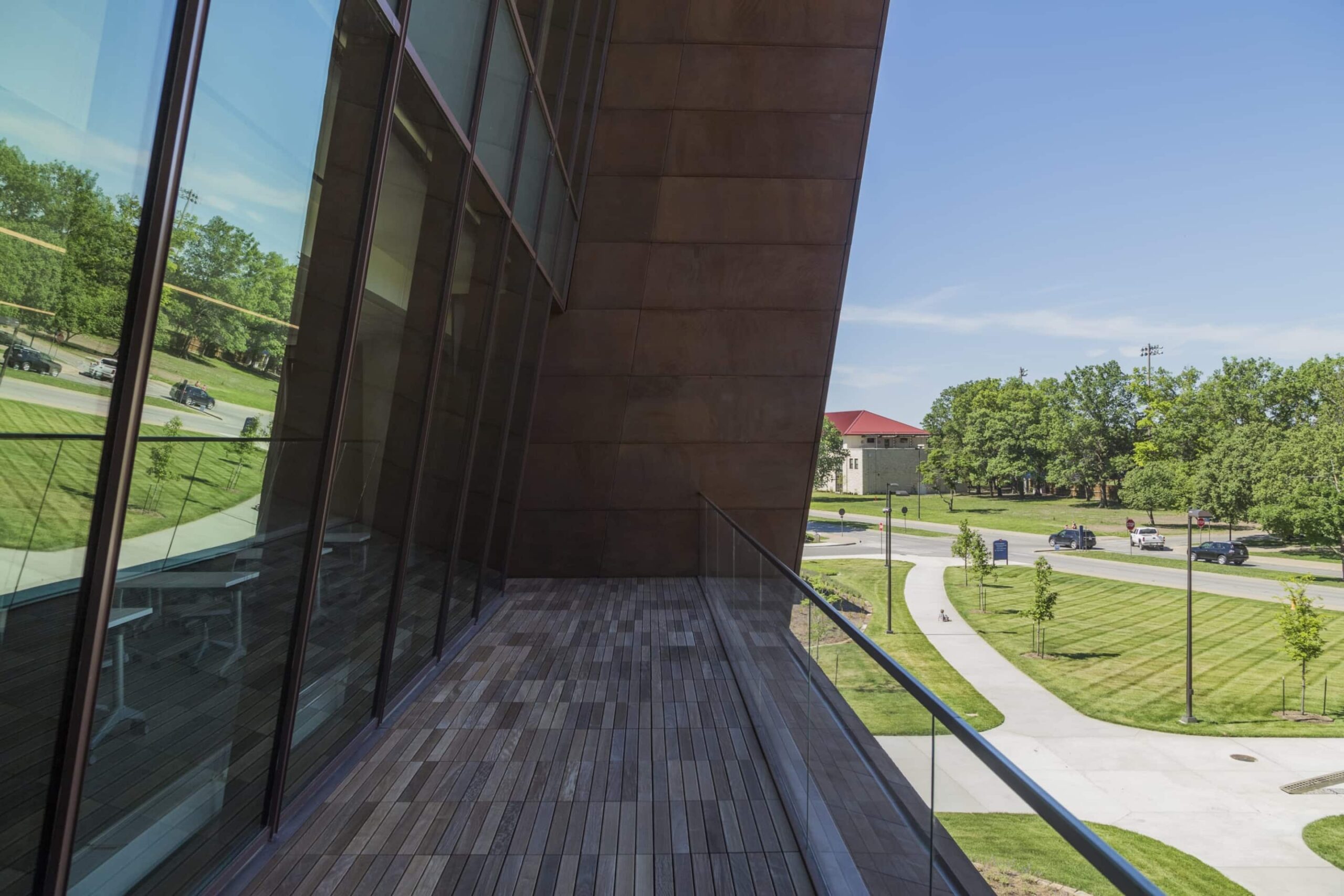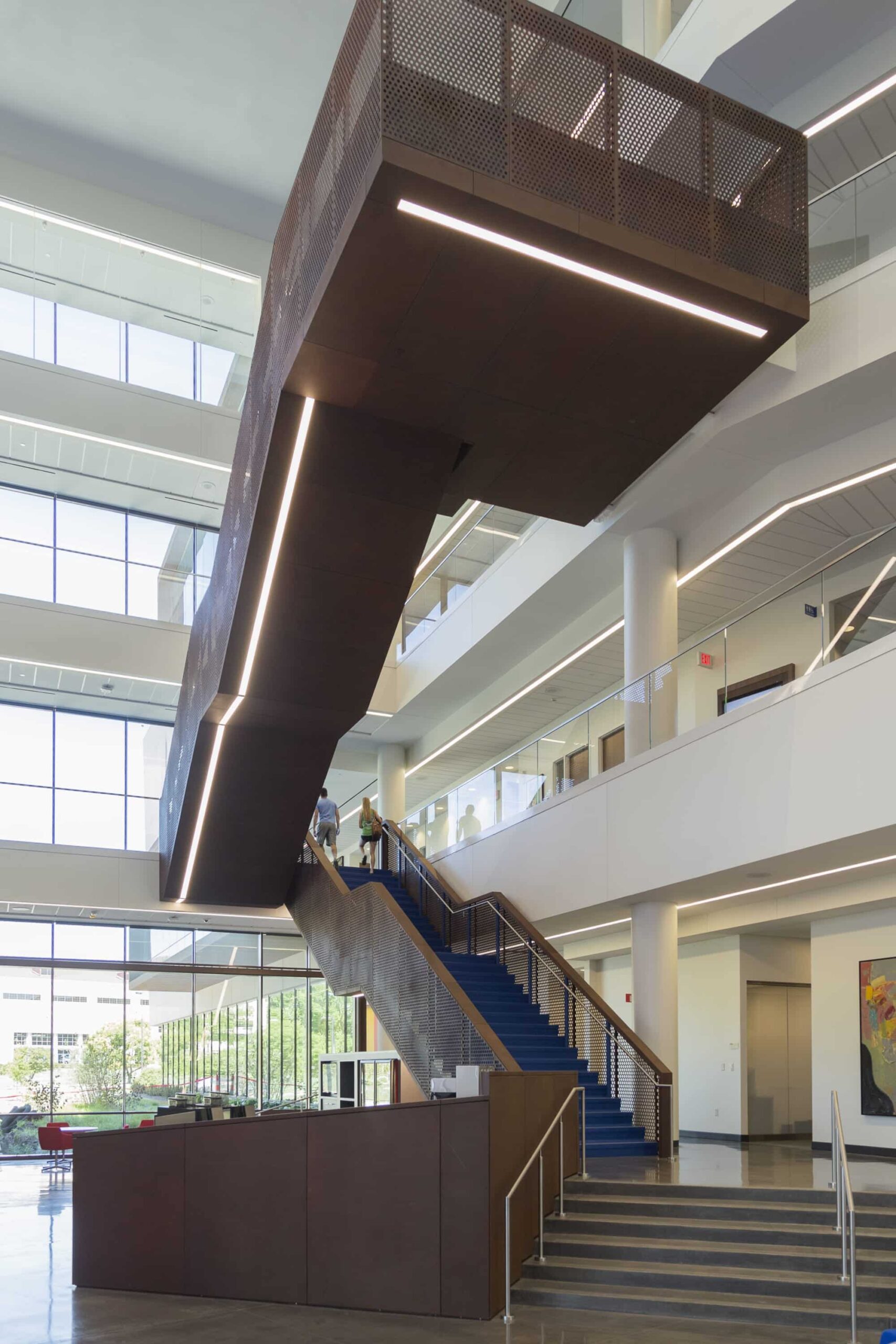 Capitol Federal Hall is a new building on the University of Kansas (KU) campus designed by Gensler, with custom architecture features made by Zahner. The building boasts four stories and an extra 166,500 square feet of space for students. It is the largest privately funded building on KU’s campus.