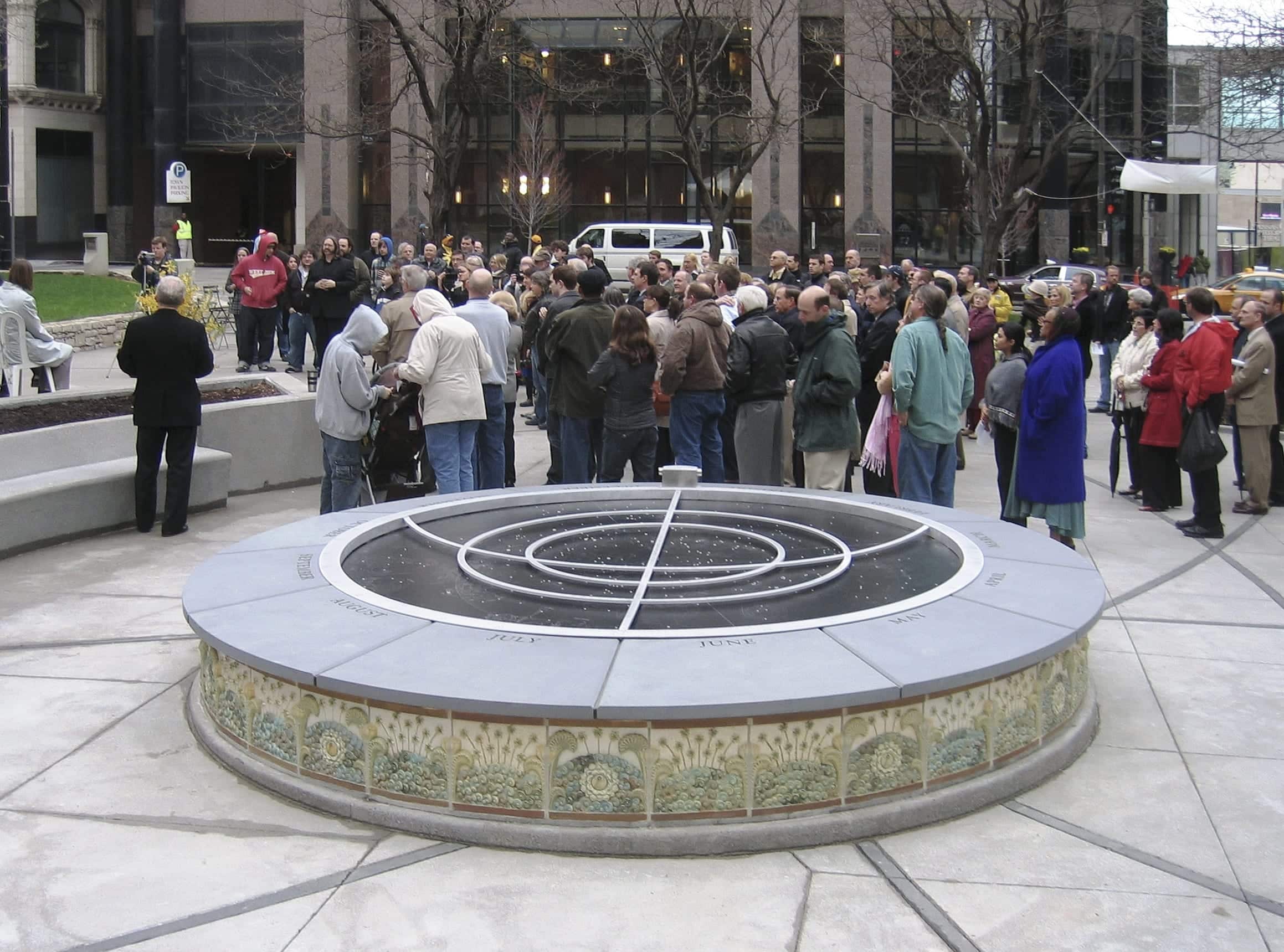 According to Astrolabe.org, the anaphoric Star Disk in the park is very likely the largest and most accurate astronomical machine of this type ever made. The ten foot diameter disk contains the positions of 457 stars in 50 constellations.