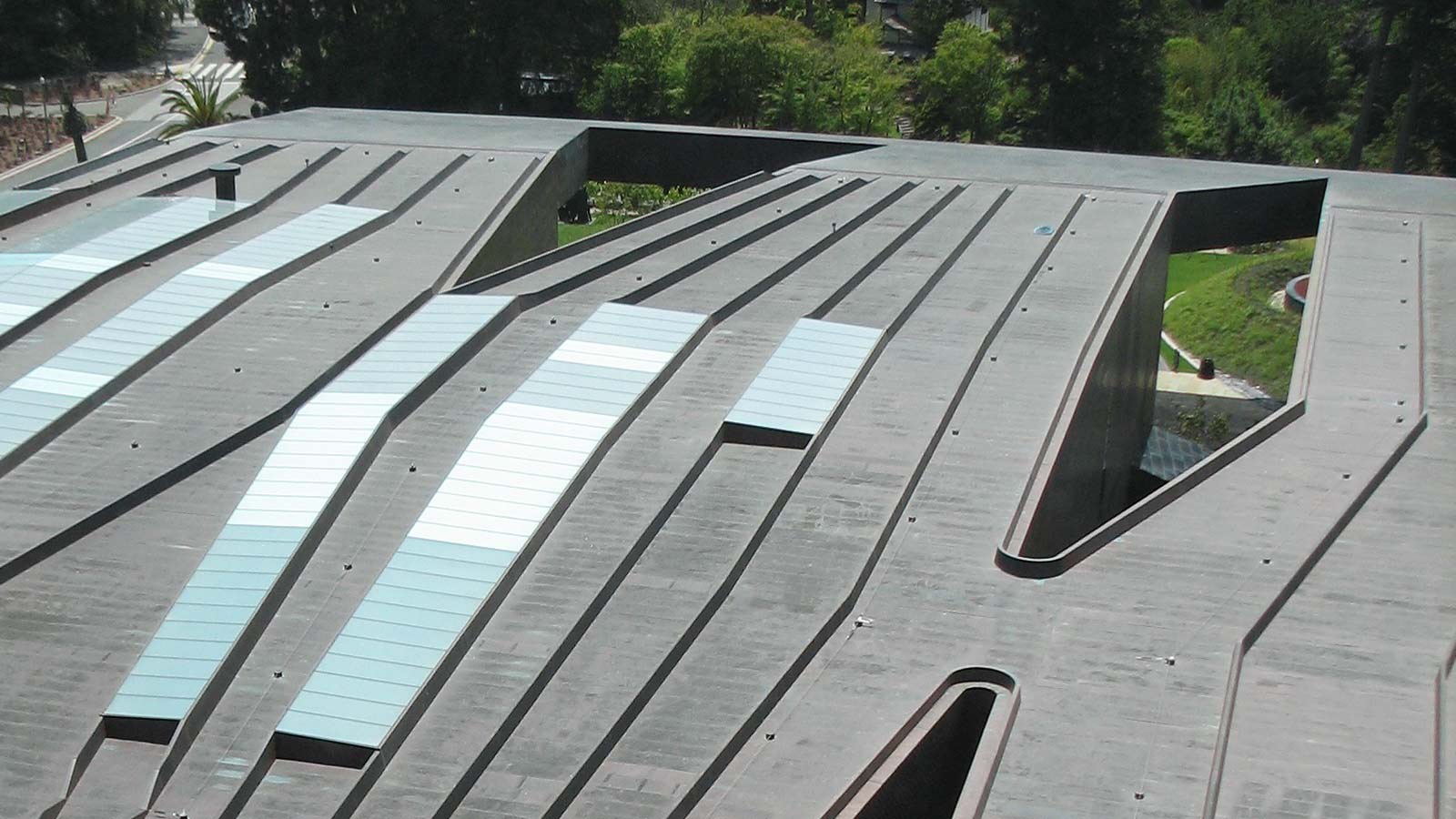 Inverted Seam roof system and channel design for the de Young Museum roof