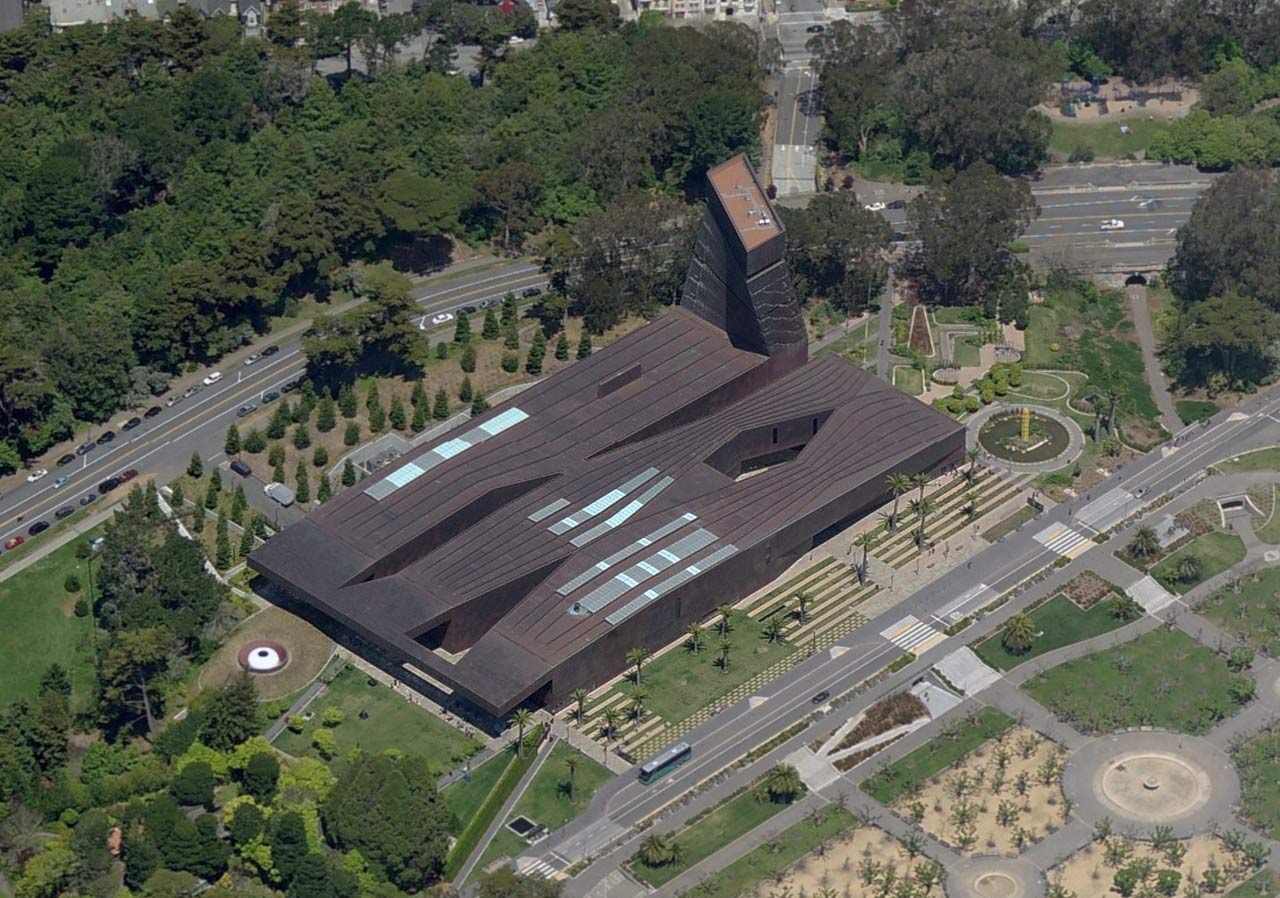 Named for San Francisco newspaperman M. H. de Young, this building is a completely reworked redesign from the original museum, which opened in 1895 as an outgrowth of the California International Exposition of 1894. After the Loma Prieta earthquake in 1989 which completely ravaged the original building’s structure, the de Young board began working to fund a restructuring of the building, and the resulting winner of the competition for its redesign in the late 1990’s was acclaimed Swiss architects, Jacques Herzog & Pierre de Meuron.