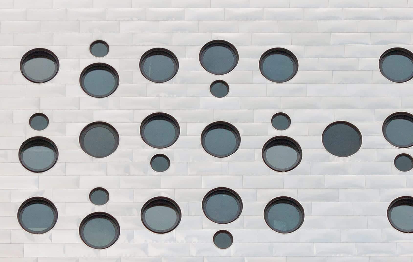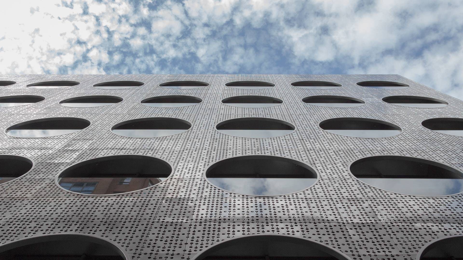 Zahner was selected to collaborate on the project due to the complexity of engineering required. The architect’s drawings outlined dozens of circular windows to be cut into the façade, mirroring parts of the preserved historic building, originally designed by Albert Ledner.