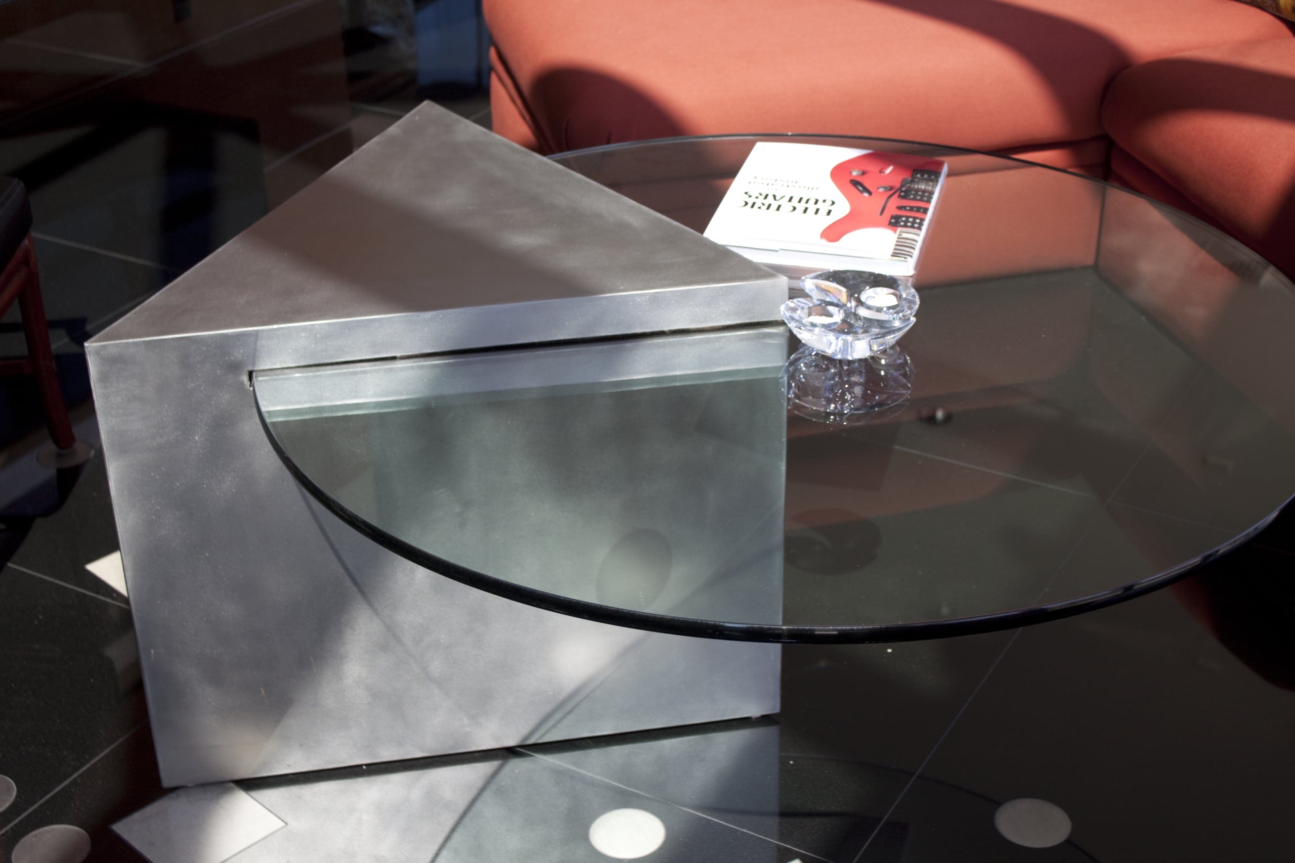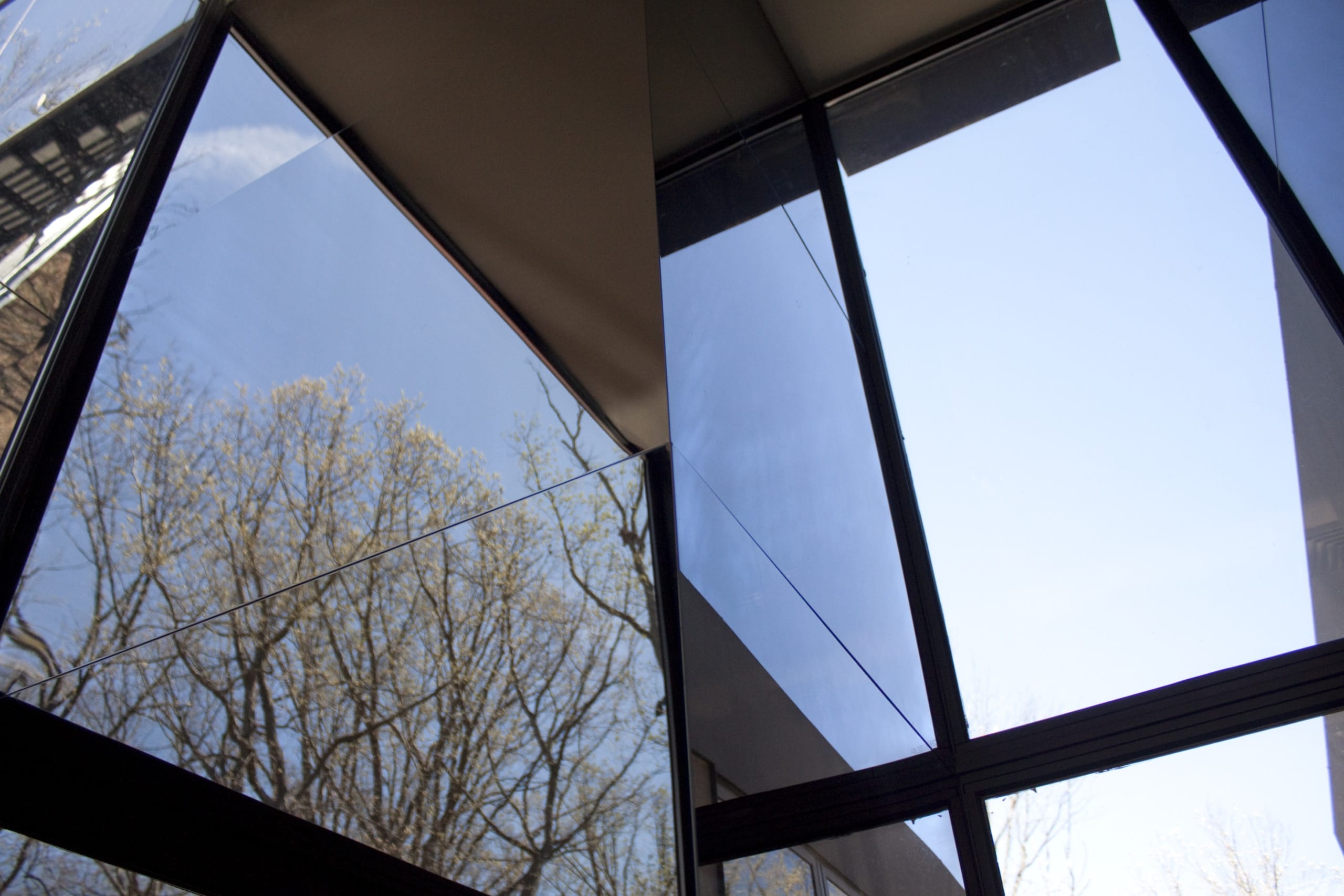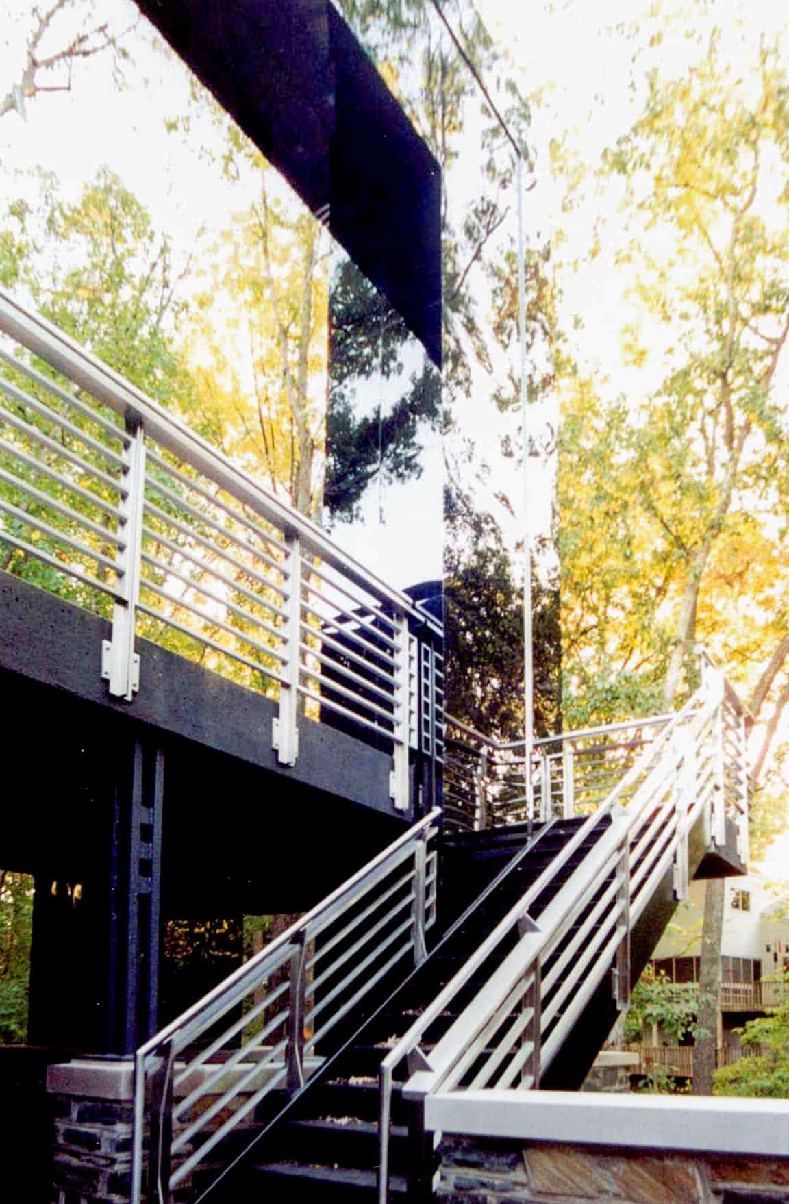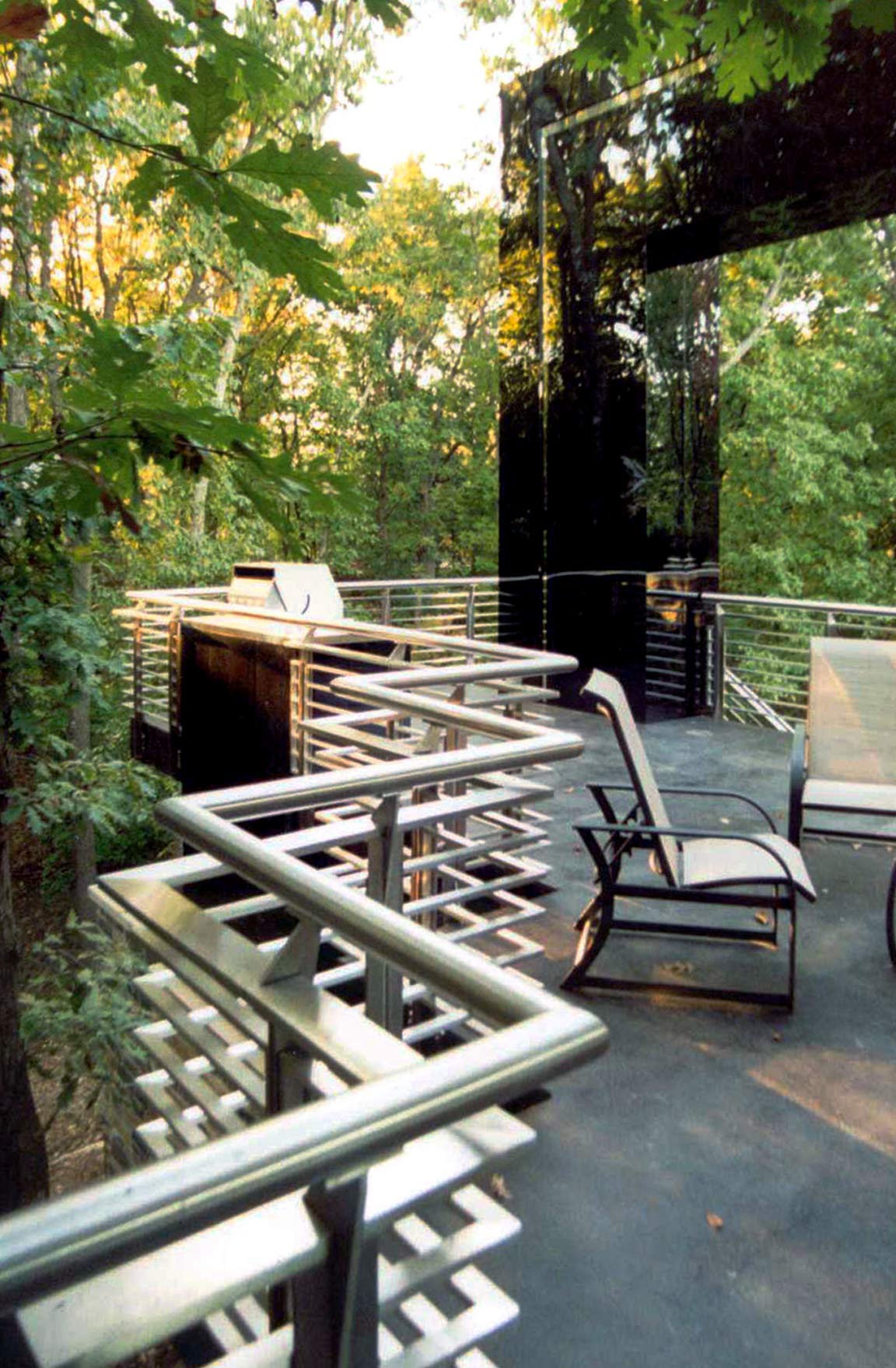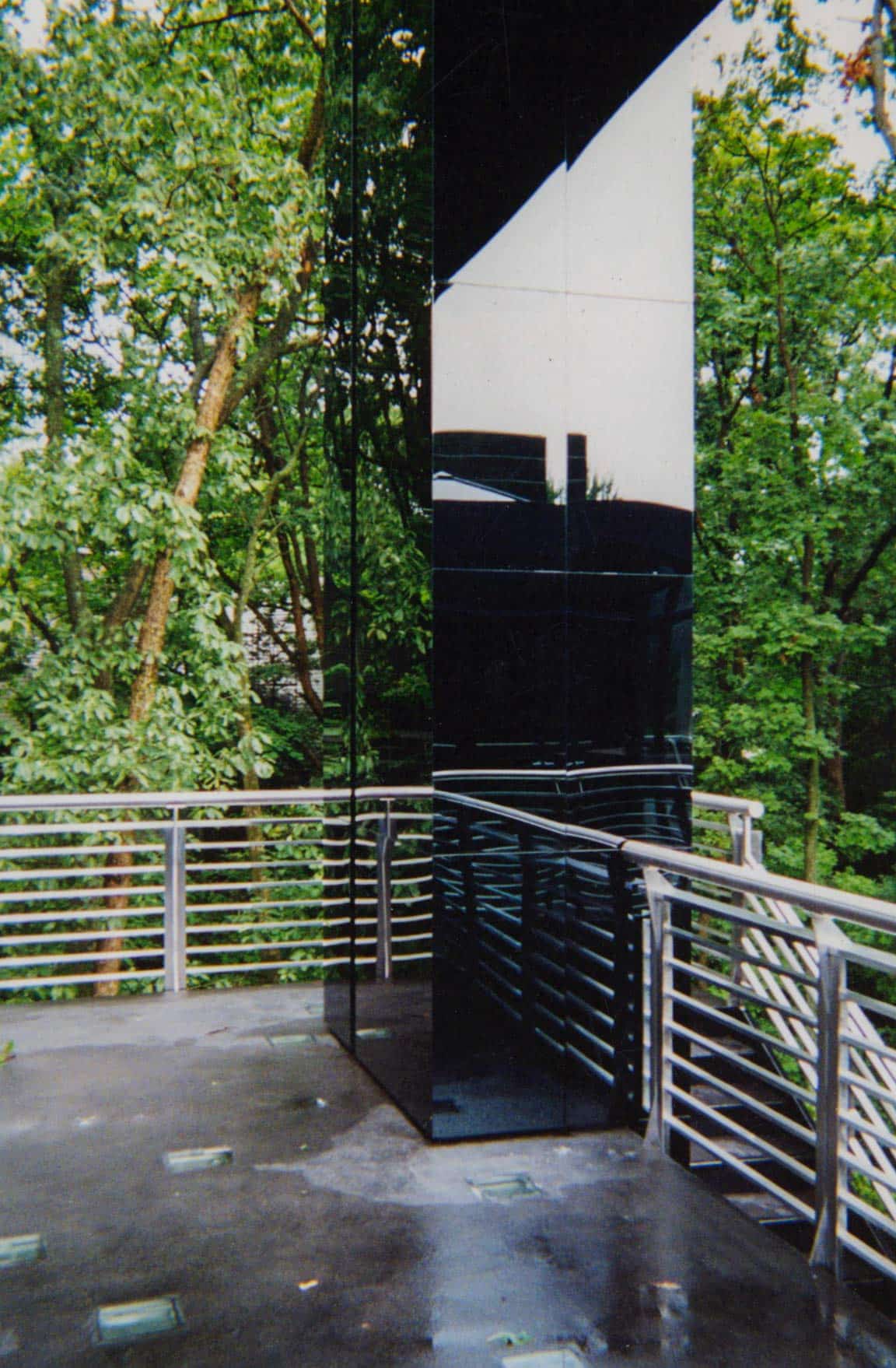 The Gaines Residence is a unique home design and renovation in Columbia Missouri which features Zahner metalwork throughout its interior and exterior. Designed by architect J.E. Cundiff, the residence uses two custom stainless steel surfaces: a hand-polished abrasive polish on stainless steel, and a black interference stainless steel with mirror polish. The mirror polish on the stainless steel is the highest polish available for stainless steel, a #9 polish.
