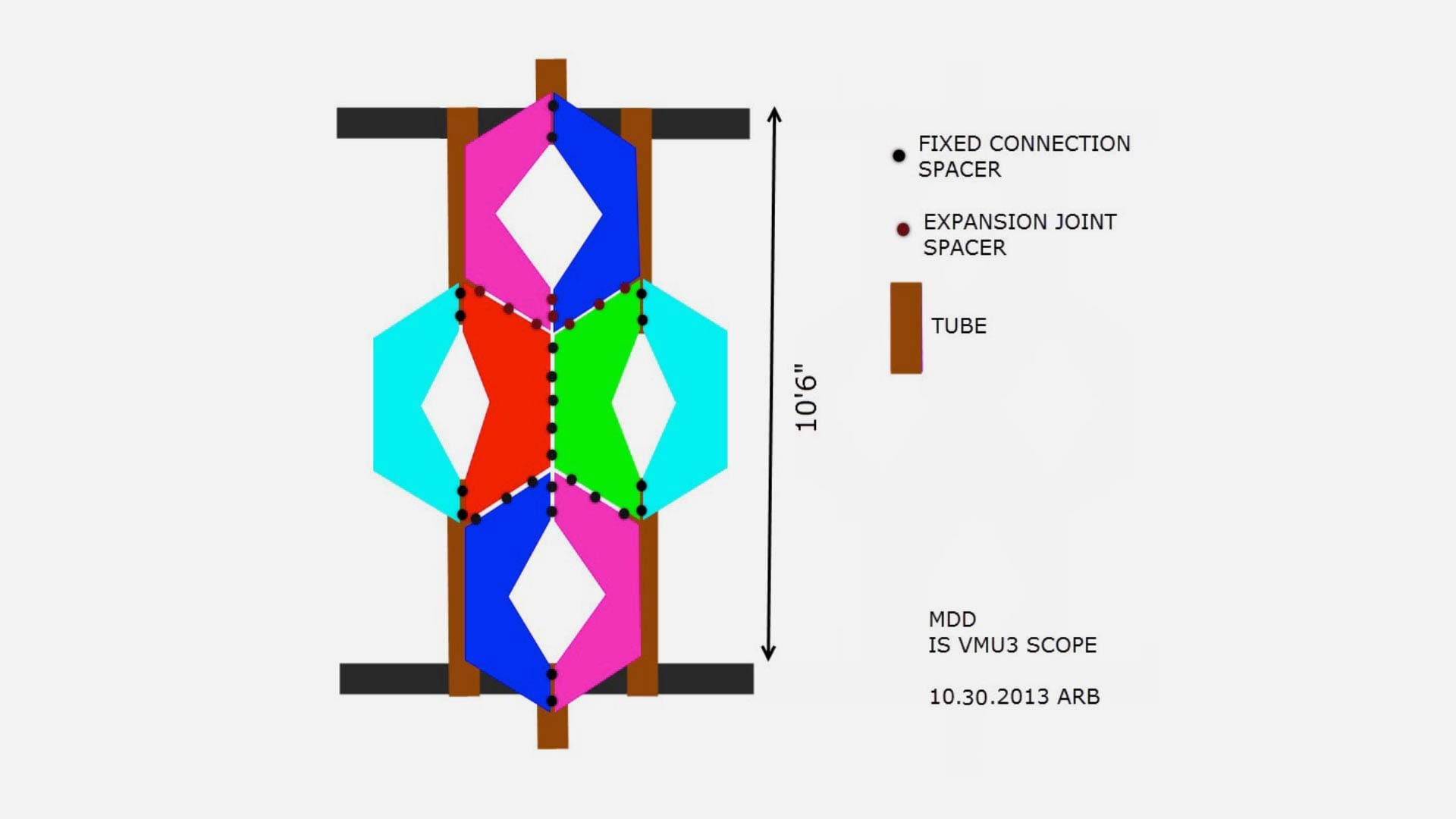 The aluminum parts were painted using a gradient coloring scheme, which provides a subtle gradation of its five unique aperture sizes, suspended from fins which cantilever from the edges of the garage’s concrete slabs.