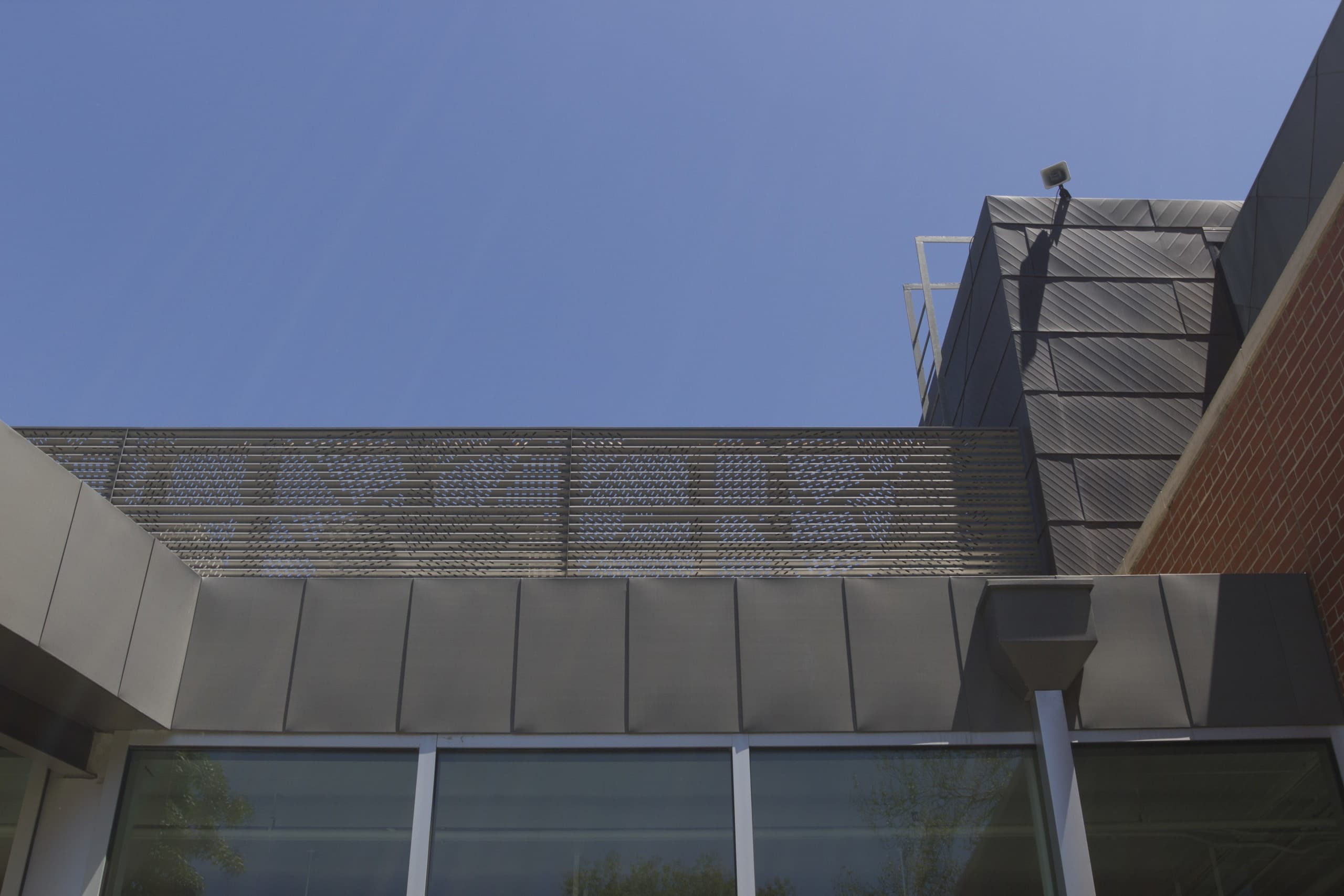 CORNER DETAIL OF THE ZINC FACADE ON THE WILLIAM T. KEMPER’S PAINTING STUDIOS AT KCAI