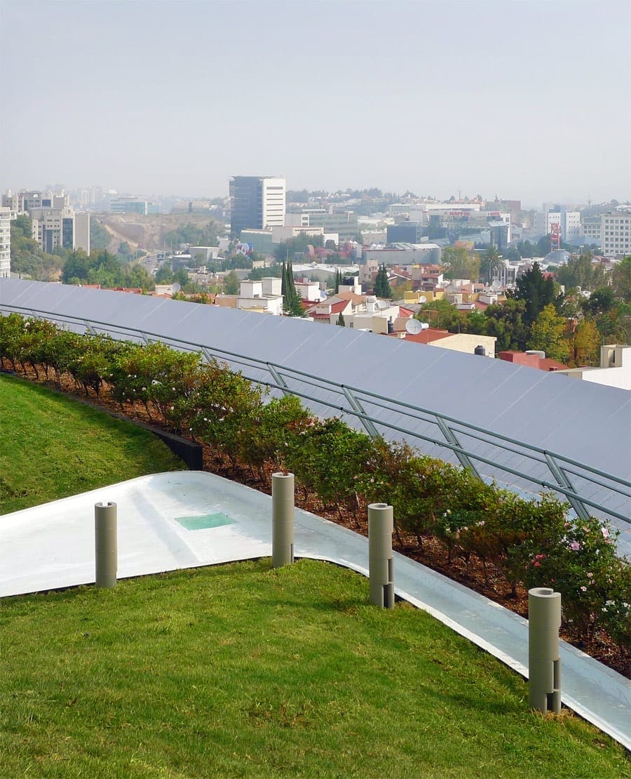 The ZEPPS Assemblies were fabricated and assembled as complete panels in the Zahner Shop in Kansas City, where they were shipped on trucks to the job site in Mexico City. Building the exterior facade with ZEPPS drastically reduces the construction time because the panels simply bolt to existing connections on the steel structure.