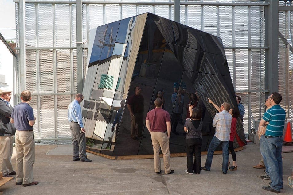 The mockup was built to simulate a corner-section at the top of the building. The mock-up for MOCA Cleveland was completed in June of 2011, and a few images of the architects’ visit are featured below.