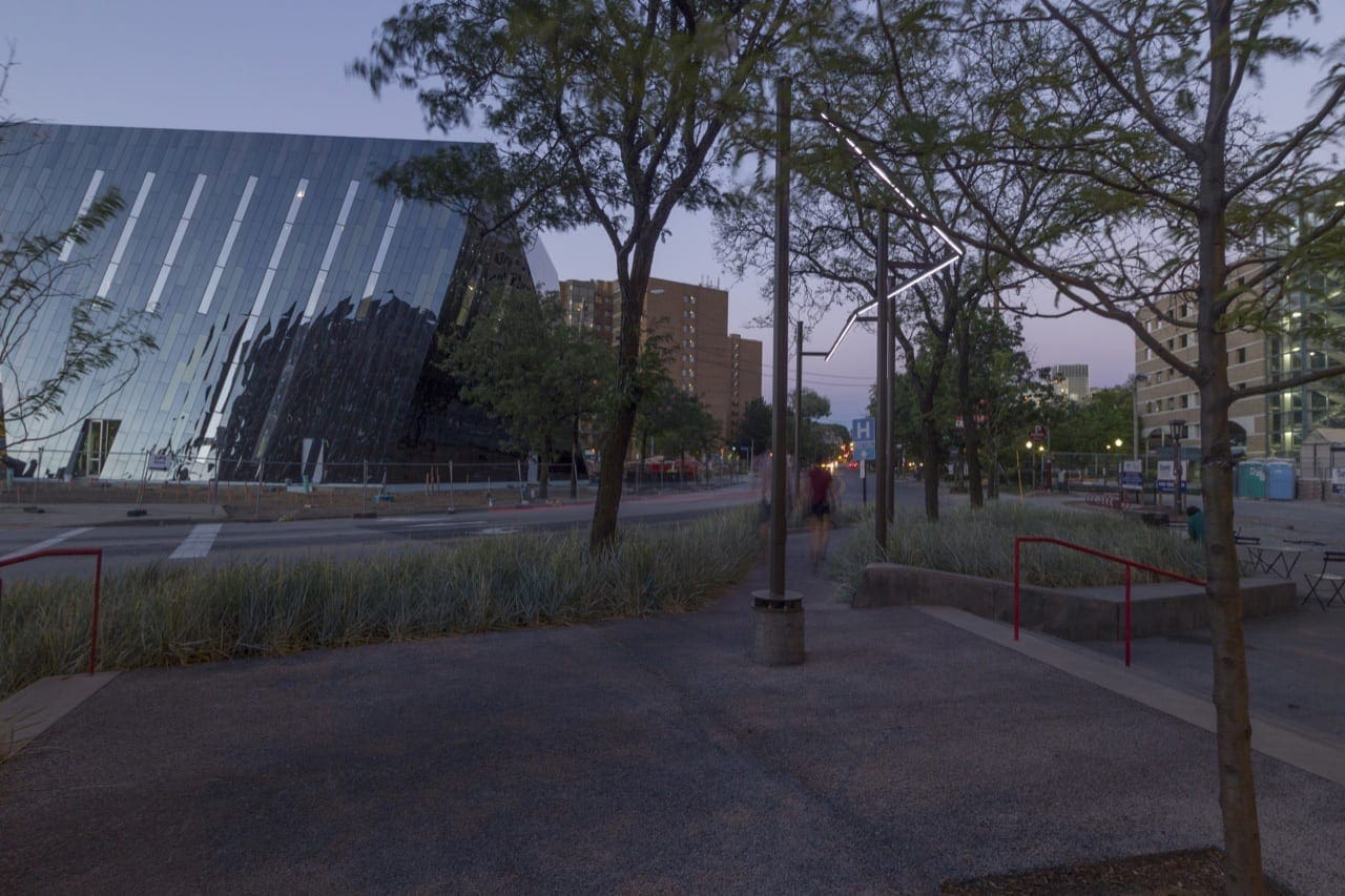 The building’s hexagonal base gives the museum multiple entries, while the building’s square top lends itself to the museum’s rotating collection, allowing the space to be easily divided into flexible temporary spaces. Because the museum has no permanent collection of its own, it was important that the building’s interior lend itself to many different kinds of work.