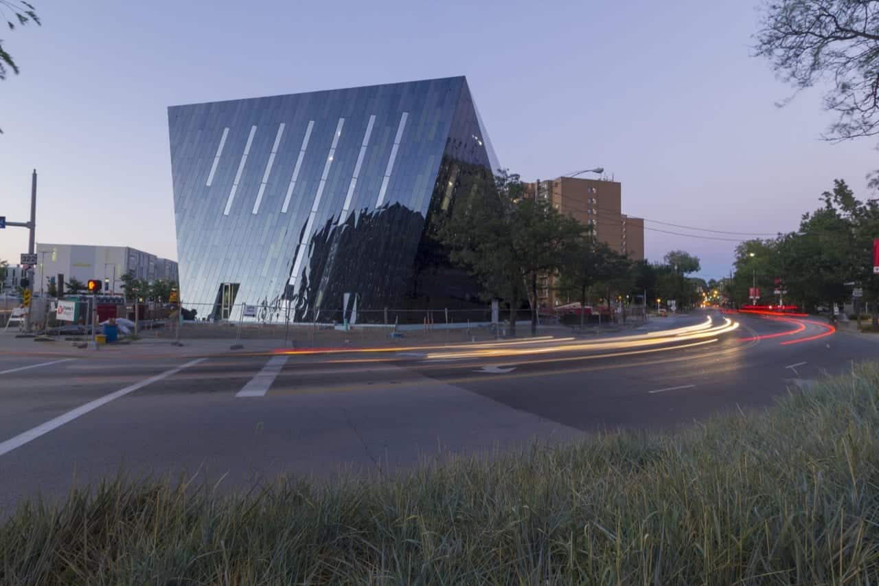 The new Museum of Contemporary Art (MOCA) Cleveland comes from the architects at Farshid Moussavi Architects. The architects designed an elegant prism to house the museum’s collection in a new space that will maximize the 34,000 square foot structure. Zahner was brought on to provide complete facade services for the project, including design assist, engineering, fabrication, and installation of the building envelope & facade of glass and metal.