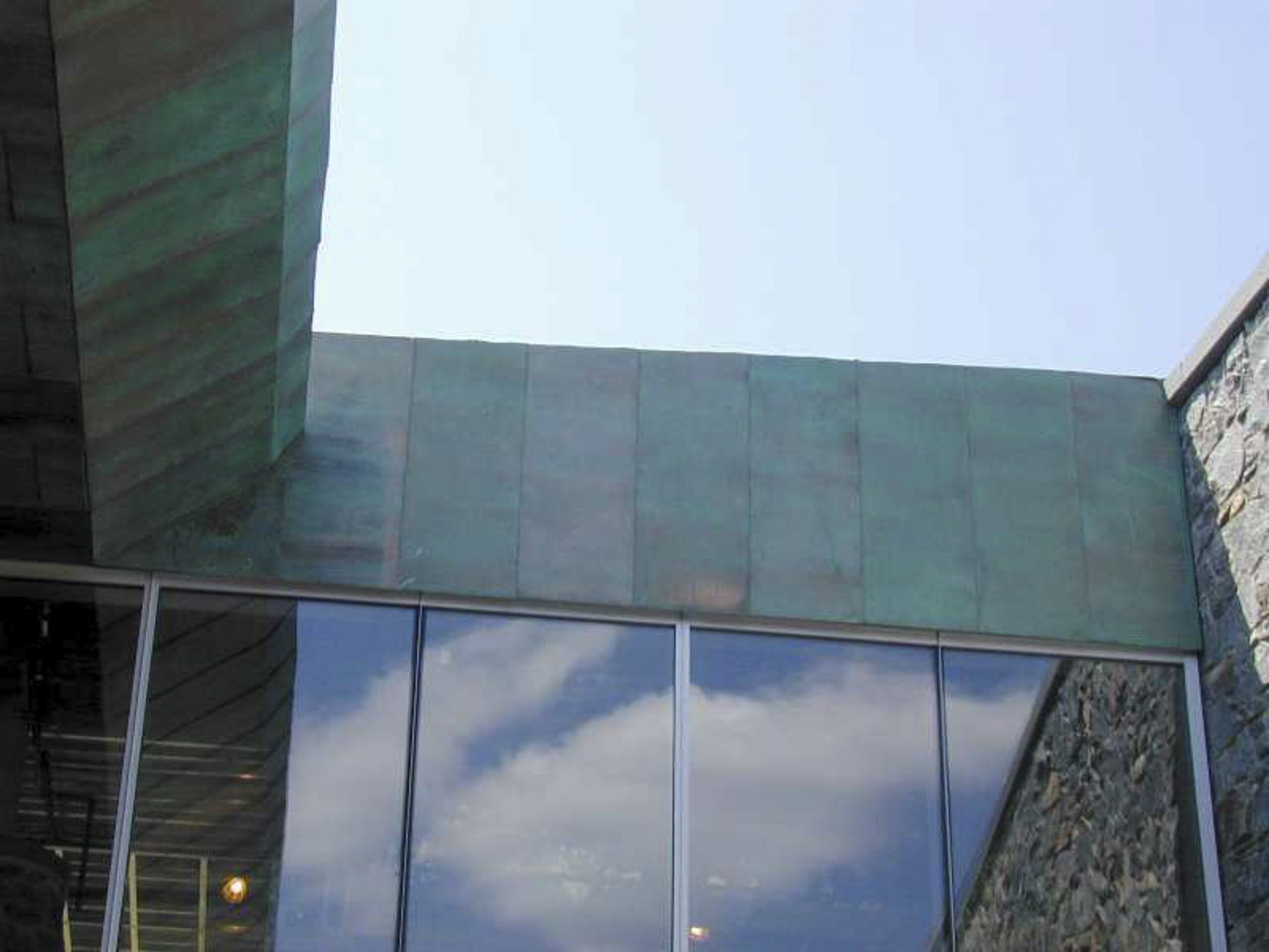 The project includes a custom patinated copper canopy which was fabricated by Zahner for the building’s entry soffit. 290 sheets of copper were processed to develop a unique and rustic patina across its surface. This is an early architectural example of custom preweathered patina on copper.