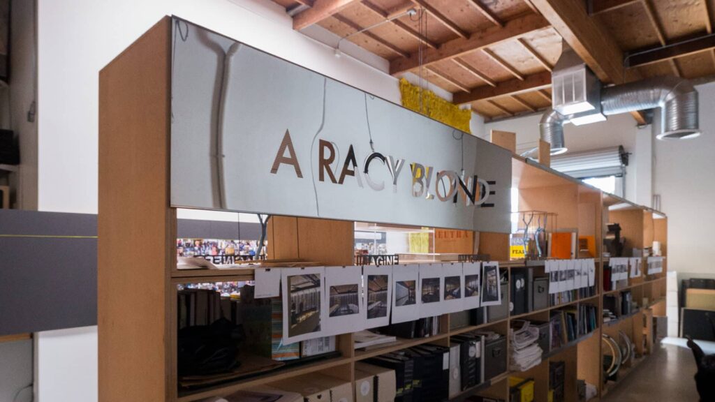 The technique used to create the building’s southern pedestrian level signage is a signature style developed by Luce et Studio on an unrealized project for Hotel James (pictured below). The signage concept was developed by Jennifer Luce to create a third dimension for the cut-out letter shapes. Zahner manufactures a groove in each of the letters, which allows the letter to then be folded out. The concept was first created years prior, and is featured prominently as a notable signage display for the San Diego Central Library.
