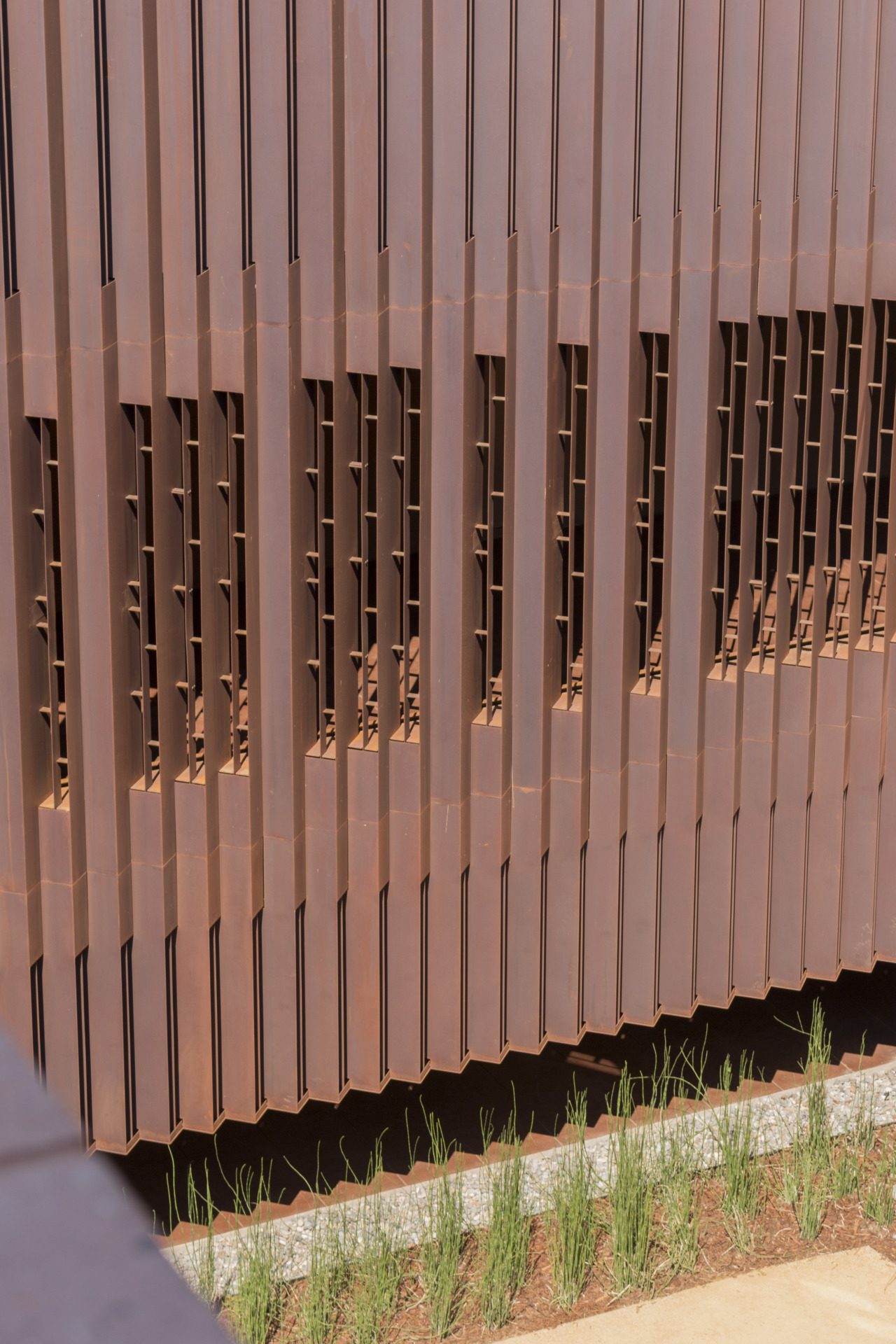 In the Davis Courtyard, Zahner engineered and fabricated a Solanum® Steel wall inspired by the sound of striking a picket fence, designed to “sing” when interacted with. Working closely with Escobedo, Zahner developed a dynamic mechanism using weathering steel plates and tuned metal tubes to produce distinct notes. All surfaces were preweathered in Zahner’s Texas facility.