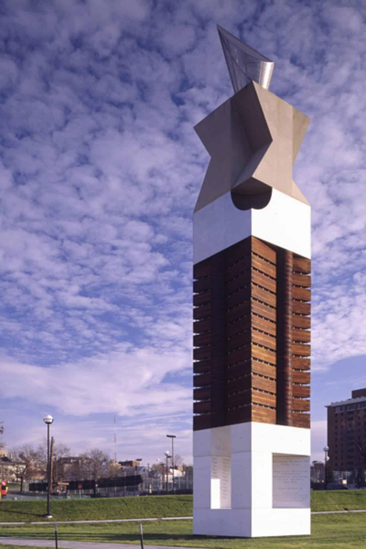 Zahner provided the perforated stainless steel "flame" which crowns the sculpture.