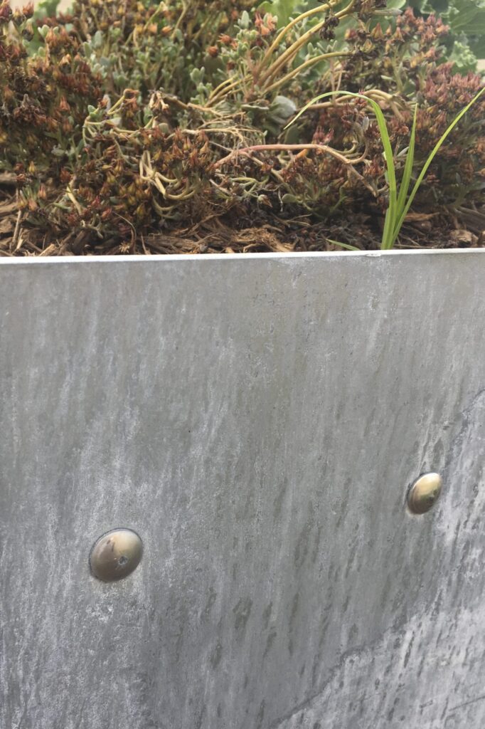 Zahner was brought into the project by the Museum to provide landscape design. The company developed a design for the planters, and fabricated and delivered the zinc plate system. The zinc plates develop a white oxide layer, and will continue to weather and patina into a subtle grey-green over the years.
