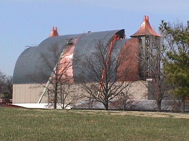 Zahner has been involved in a range of scopes for the Starlight Theatre in Kansas City, ranging from the roof and cupola turrets, as well as the Donor’s Circle completed with artist Dierk Van Keppel.