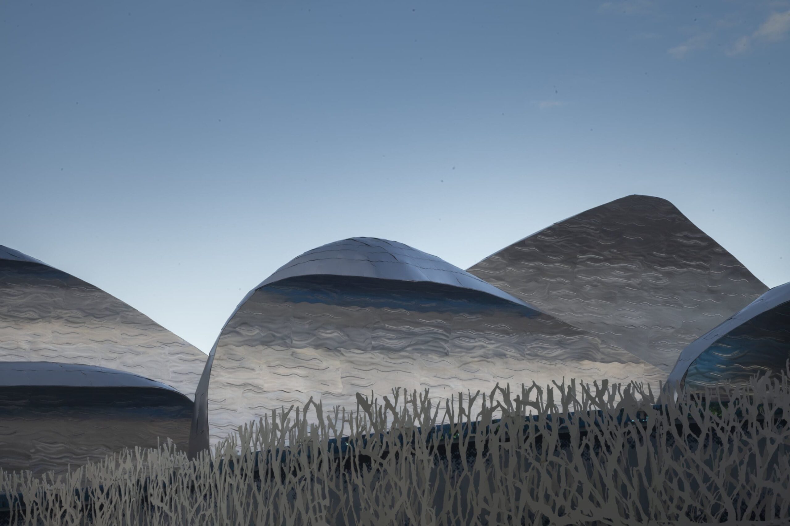Visual mockup for the Suzanne and Walter Scott Aquarium facade, assembled in Zahner’s Kansas City facility.