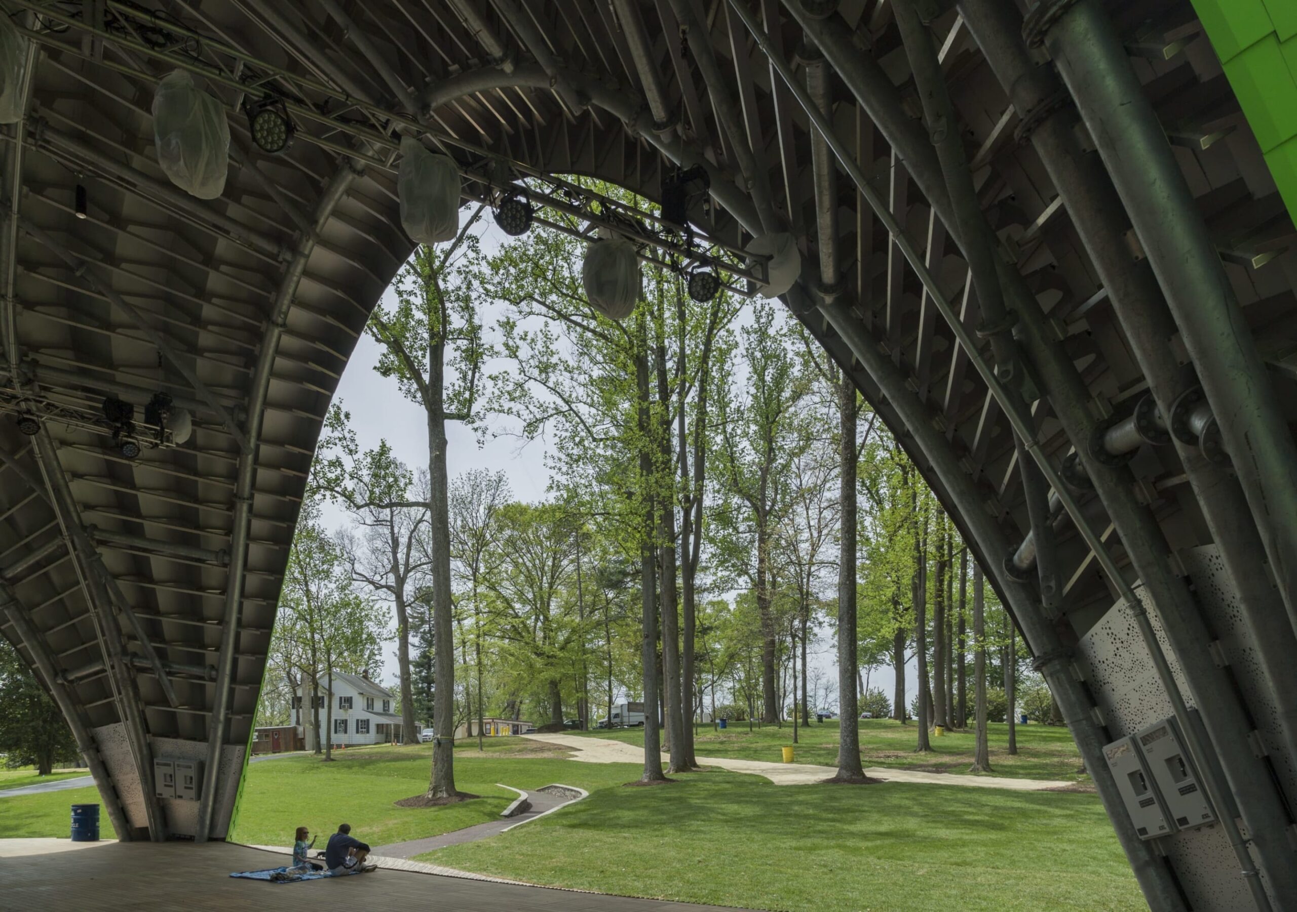Located in the city of Columbia in Maryland, the sculptural work is nestled in the Merriweather Park at Symphony Woods. The new construction is placed adjacent to the Merriweather Post Pavilion, a performance center in Symphony Woods Park.