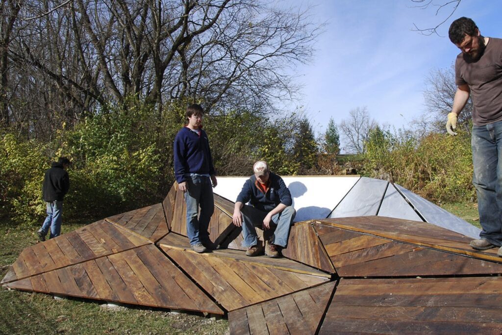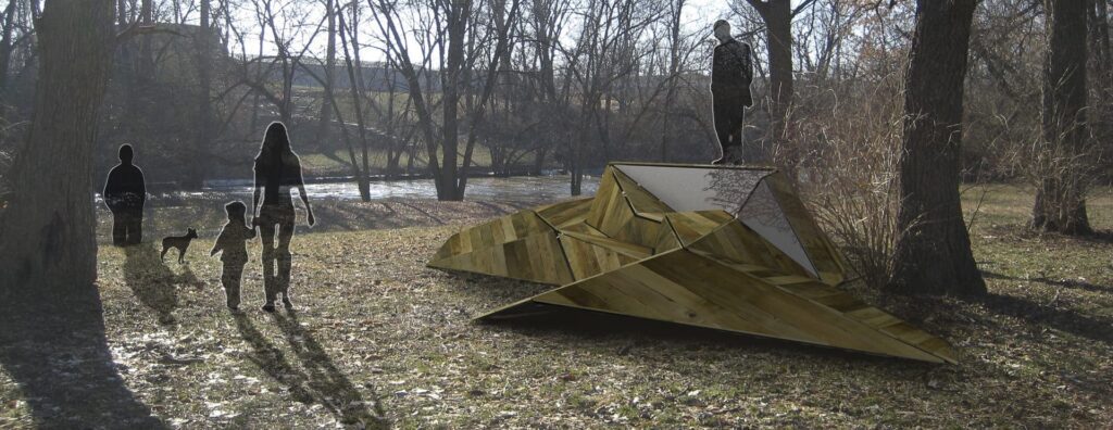 The reBarn project is installed at Westside Park as part of the public recreation trail running along the White River.
