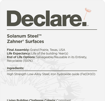 For interior applications of Solanum Steel, the material can be sealed with a clear coating to provide a softer touch. However, for exterior applications, it is recommended to leave the material unsealed.