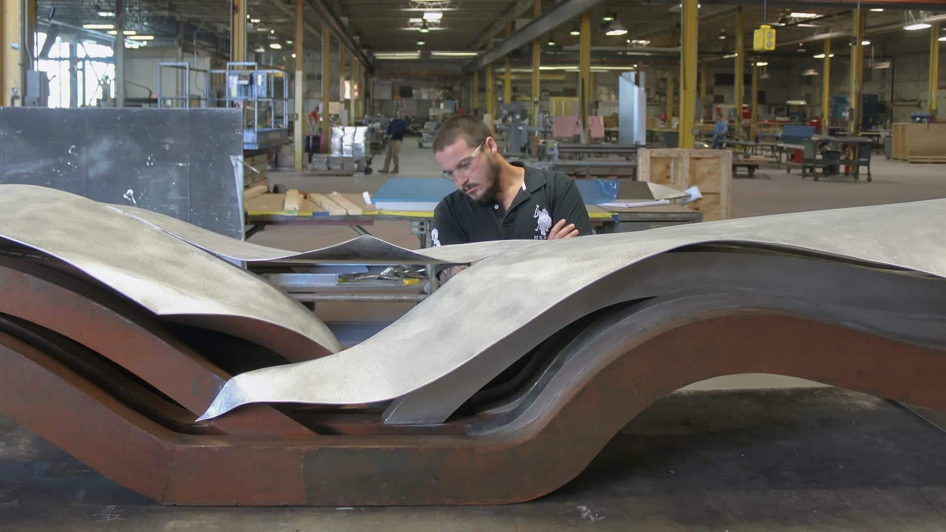 Every other year, Zahner hosts an art competition for the Kansas City Art Institute (KCAI), donating engineering and fabrication services to the school for the winning entry. We then deliver the artwork to KCAI, where the sculpture is auctioned off at the school’s biennial art auction. All of the proceeds go to benefit future student scholarships.