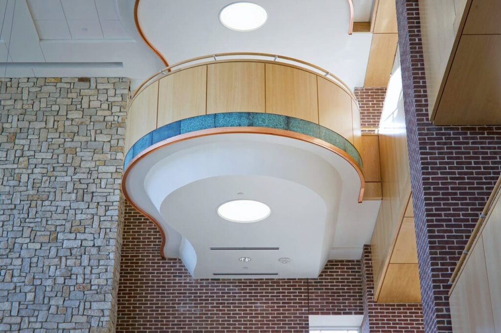 Such a large installation highlights the mottled and variegated green surface of Star Blue. Along with a memorable appearance, the patina offers a layer of natural protection for the copper alloy.