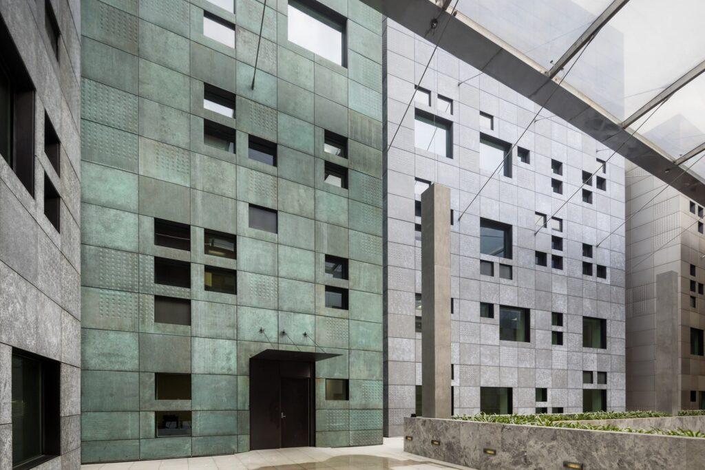 Zahner provided metalwork for the project and developed an advanced patina on the copper in the United States before it arrived in Hong Kong.