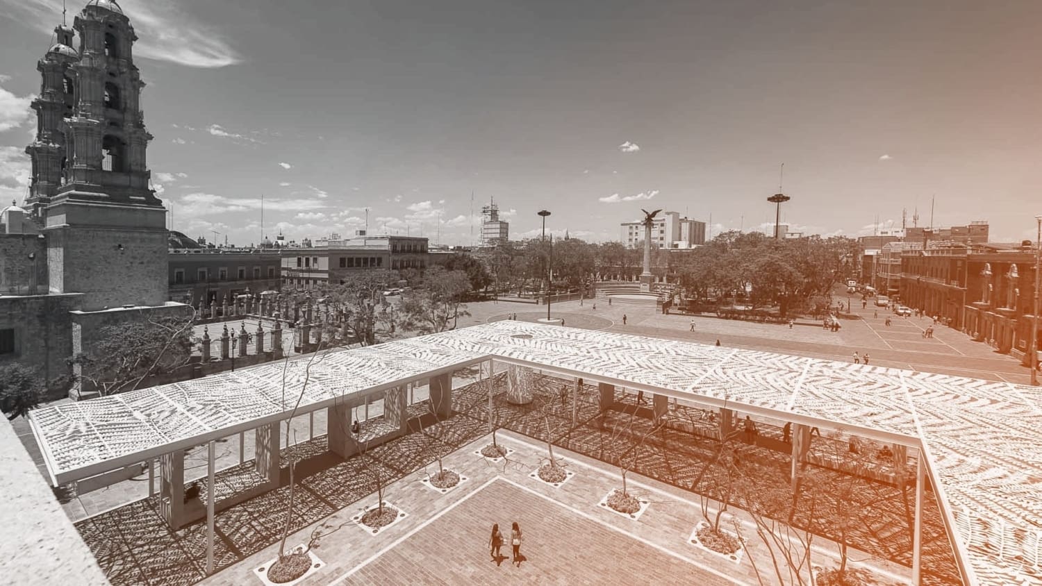 PERFORATED ALUMINUM COLUMNS ADORN THE ENTRANCE OF ARTESIA.