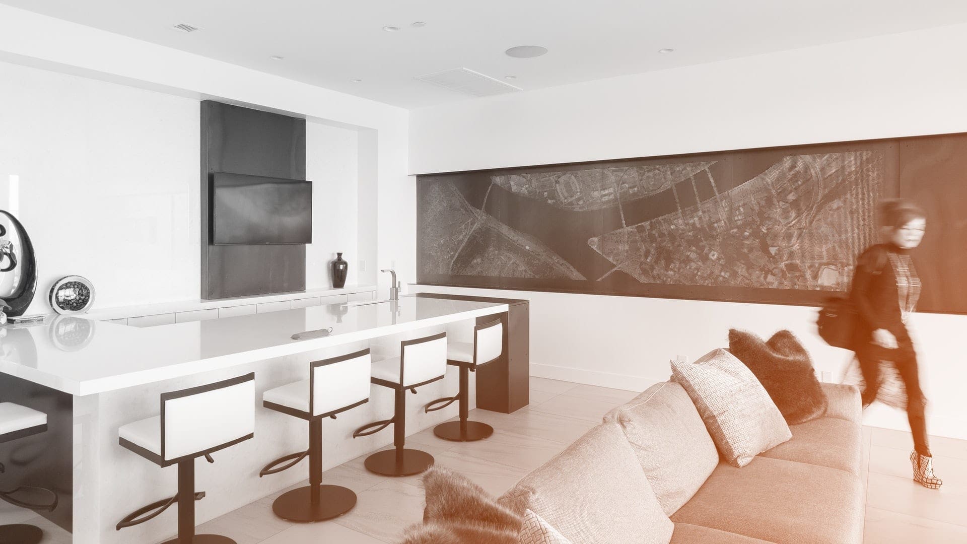 The Ridges Residence is a private home featuring Zahner-manufactured interior metal artwork designed by Make Studios. Located in The Ridges, a neighborhood of Las Vegas, the project includes a carbon-steel perforated wall art feature which Zahner provided as a supply-only to Make Studios. Working collaboratively with Zahner's ImageWall team, the designers and artists at Make Studios worked with Blue Heron to develop a "Carbon Canvas" concept, showcasing artistic imagery through perforated metal. The owner of the residence had a fondness for the city of Pittsburgh, so the artwork shows a aerial view of the city's downtown area. The artwork is manufactured in a designer-specified alloy of hot-rolled steel, a material long associated with the Pennsylvania city.