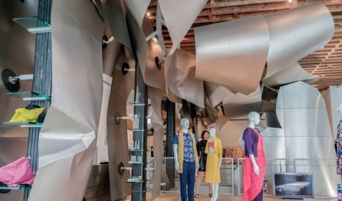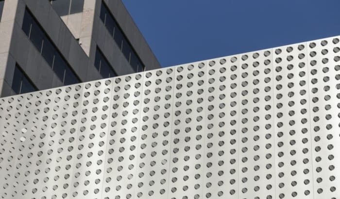 Miu Miu Aoyama is a luxury retail building in Tokyo designed by Herzog & de Meuron. The building exterior features Zahner-manufactured copper bullnose details with dense custom perforations and round zig-zag seams. Zahner also provided the interior copper panels with the same bumped copper aesthetic. The project was developed for Miuccia Prada who leads the Paris-based Miu Miu brand. Located in the Aoyama district in Tokyo, the project is the latest in a neighborhood that has become known for architectural innovation. Across the street is the Prada Tokyo Epicenter also designed by Herzog & de Meuron. The Miu Miu Aoyama represents a stark contrast to the prior work. Its subtle reflective exterior disguises its rich copper soffit and interior.
