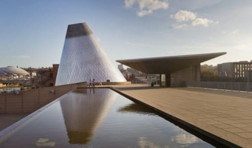 The Mexican Museum is a distinctive space located in the SoMa District of downtown San Francisco. The museum's vision is to reflect the evolving scope of the Mexican, Chicano, Hispanic, Mexican-American, and Latino experience. Zahner's scope includes an exquisite and stunning façade, designed by Jan Hendrix, and is comprised of sprawling stainless-steel panels. The use of Zahner’s Angel Hair® and mirror polish stainless steel provides contrasting views from both inside the museum and out.