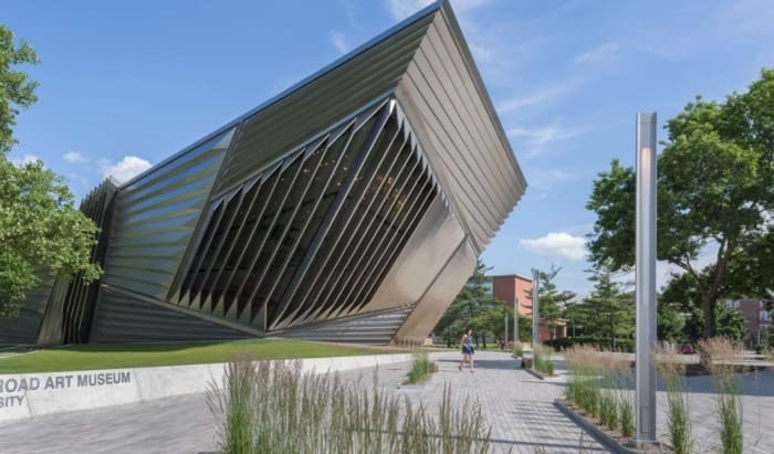 The Center for Contemporary Art opened in 2003 and is the first Museum in the United States designed by Zaha Hadid. Located in Cincinnati, Ohio, the project uses blackened aluminum, an uncommon patina which was produced with great difficulty, and sealed to decrease the need for maintenance. This custom dark aluminum surface was desired by Zaha Hadid to provide contrast against the light concrete above and below, giving the sturcture an almost anthropomorphic resemblance. These plates of blackened aluminum use a siding system which repels moisture. These were engineered to interlock in such a manner to control thermal movement without compromising the moisture deterrence requirements. This was important due to the installation on concrete, which breathes. The aluminum plate panel system features custom extruded hardware fastened using matching aluminum studs for a visually seamless system. This hardware is attached to the horizontal aluminum hat channel.