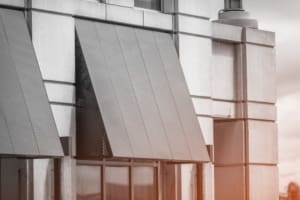 DETAIL OF THE PAINTED ALUMINUM SHINGLES AND STRUCTURE OF THE CHRYSALIS.